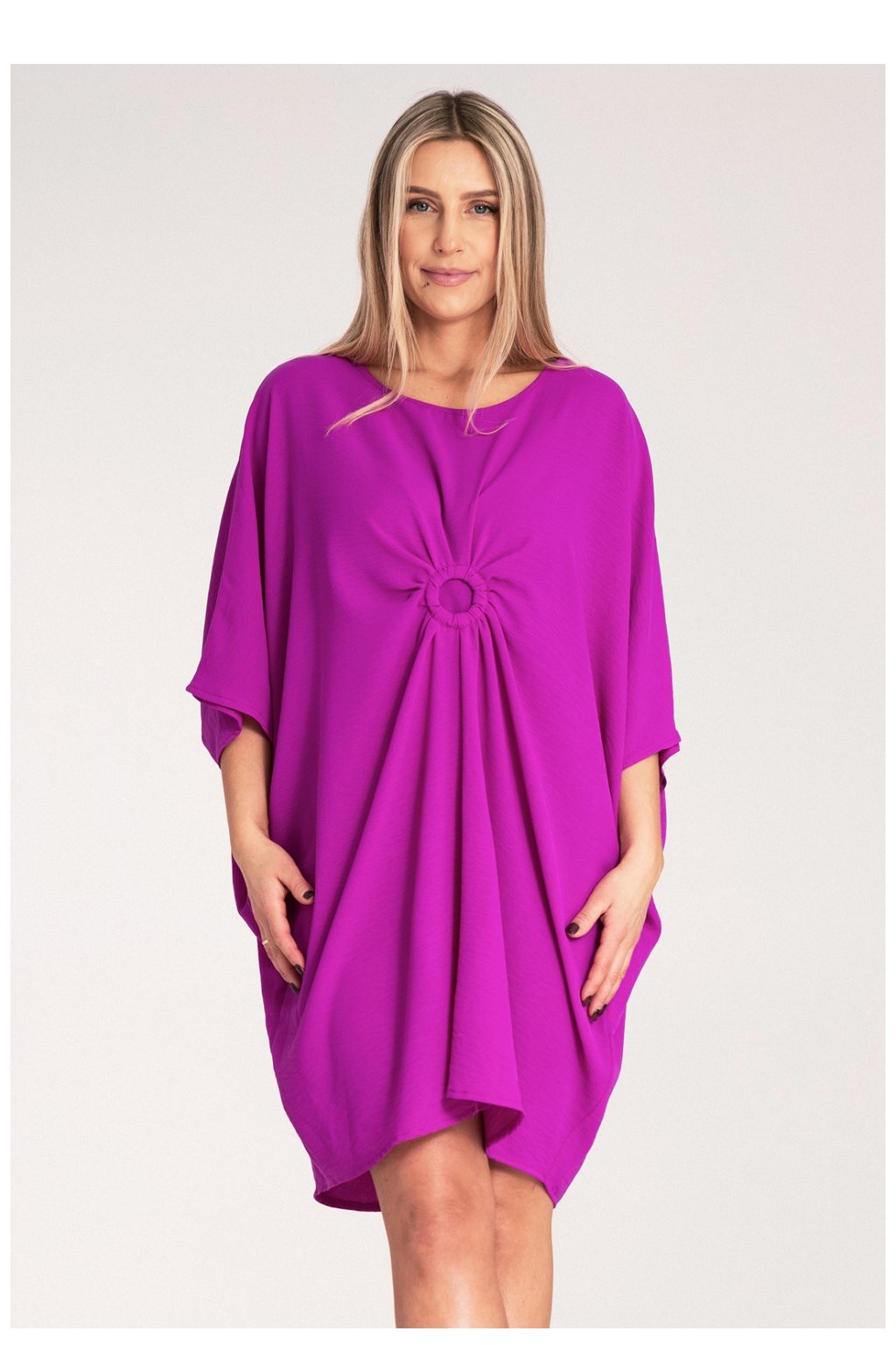Volný, asymetrický šaty z lehkého, elastického materiálu. Šaty s širokými rukávy a ozdobným kroužkem lemovaným látkou, vytvářejícím efekt roucha. Ideální pro osoby nosící velikosti S, M, L a XL.| Velikost | Délka | Obvod beder | Obvod prsou | Obvod v pase |