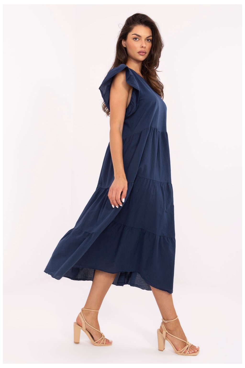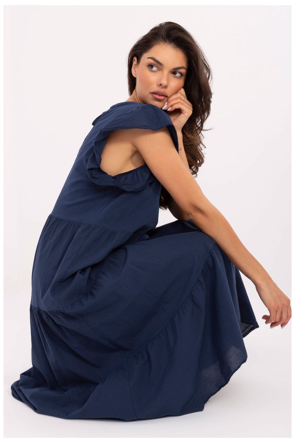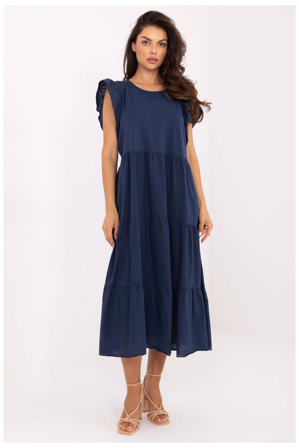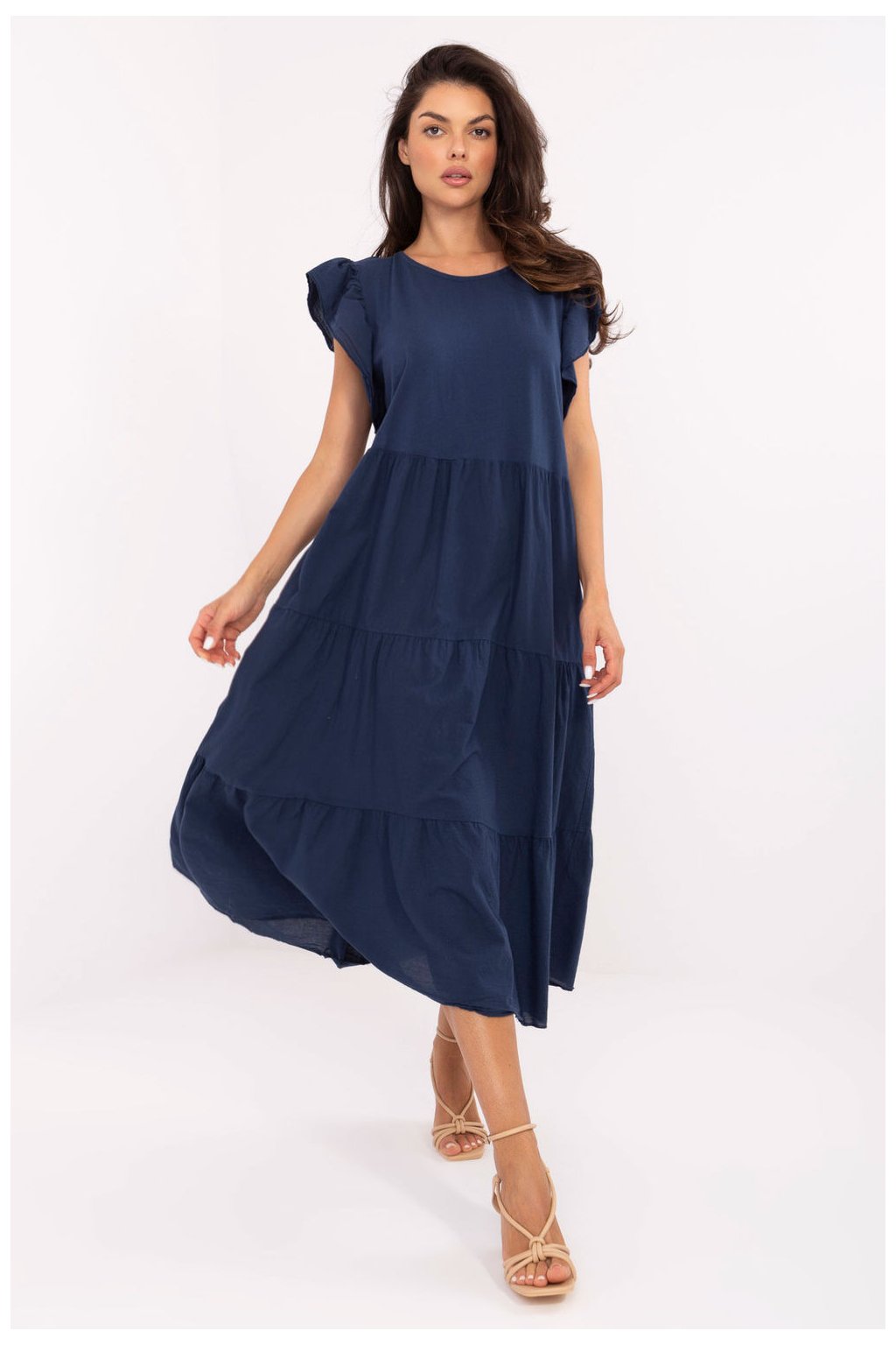 Volný, pohodlný a stylový, tento oversized bavlněný šaty jsou ideální volbou pro každodenní letní outfit. Vyrobený z přírodního, prodyšného materiálu, poskytuje volnost pohybu a pohodlí po celý den. Model střední délky z hladké látky, s kulatým výstřihem a krátkým rukávem zdobeným jemnou volánkou, která dodává ženský dotek. Zadní část šatů zdobí jemné šněrování na zádech, které celkovému vzhledu dodává lehce romantický charakter. Šaty se skvěle hodí na každodenní nošení do práce, na nákupy, procházku nebo setkání s přáteli. Stylové ve své jednoduchosti, budou skvělým základem pro mnoho letních outfitů.| Velikost | Délka | Obvod beder | Obvod prsou | Obvod v pase |