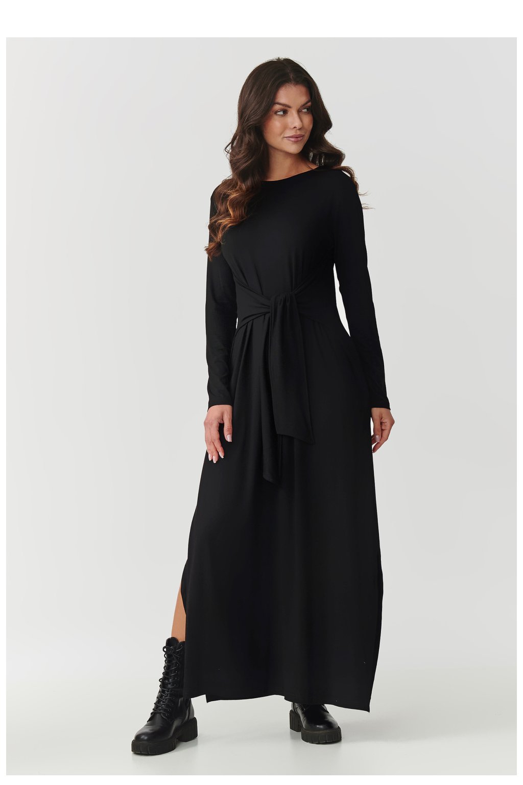 Maxi šaty z viskózy spojují pohodlí s nadčasovou elegancí. Měkký, prodyšný materiál zaručuje pohodlné nošení po celý den, zatímco dlouhé rukávy a efektní vázání v pase krásně zdůrazňují siluetu. Kulatý výstřih se hodí ke každému typu postavy a stylu. Jemné rozparky po stranách dodávají celému modelu lehkost a ženský charakter, zároveň zajišťují volnost pohybu. Tyto šaty se skvěle hodí jak na běžné nošení, do práce, tak i na setkání s přáteli. Stačí změnit doplňky, abyste jim dodali buď více ležérní nebo elegantní charakter. Díky klasickým barev, antracitové, černé, bordové, khaki a čokoládové, snadno je zkombinujete se svým šatníkem a vytvoříte mnoho jedinečných outfitů. Maxi šaty s vázáním v pase jsou moderní volbou spojující vzhled, pohodlí a univerzálnost. Skvěle vypadají jak s botkami a koženou bundou, tak i v kombinaci s elegantními podpatky nebo sportovními teniskami.Viskóza 95 %