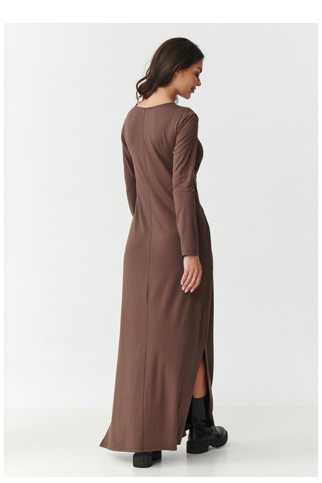 Maxi šaty z viskózy spojují pohodlí a nadčasovou eleganci. Měkký, prodyšný materiál je velmi pohodlný na nošení po celý den, dlouhé rukávy a efektní vázání v pasu krásně zdůrazňují postavu. Kulatý výstřih se hodí ke všem typům postav a stylům. Jemné rozparky po stranách dodávají lehkost a ženský charakter, zároveň zajišťují volnost pohybu. Tento model se skvěle hodí jak do každodenního života, do práce, tak i na setkání s přáteli. Stačí změnit doplňky, abyste stylizaci dodali více ležérního nebo elegantního charakteru. Díky klasickým barev, antracitu, černé, bordó, khaki a čokoládové, snadno ji sladíte se svým šatníkem a vytvoříte mnoho jedinečných outfitů. Maxi šaty s vázáním v pasu jsou návrhem, který spojuje moderní vzhled, pohodlí a univerzálnost. Skvěle vypadají jak s botkami a koženou bundou, tak i v kombinaci s elegantními podpatky nebo sportovními teniskami.Viskóza 95 %