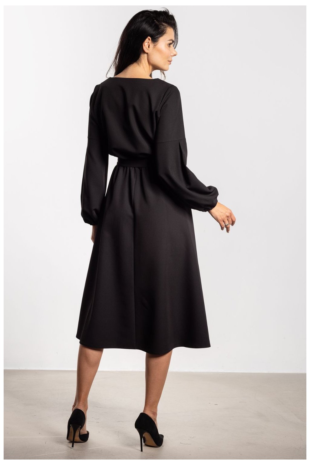 Přiléhavé šaty s dlouhými rukávy z kvalitní látky. Model se srdíčkovým výstřihem a elastickým pasem. Elastan