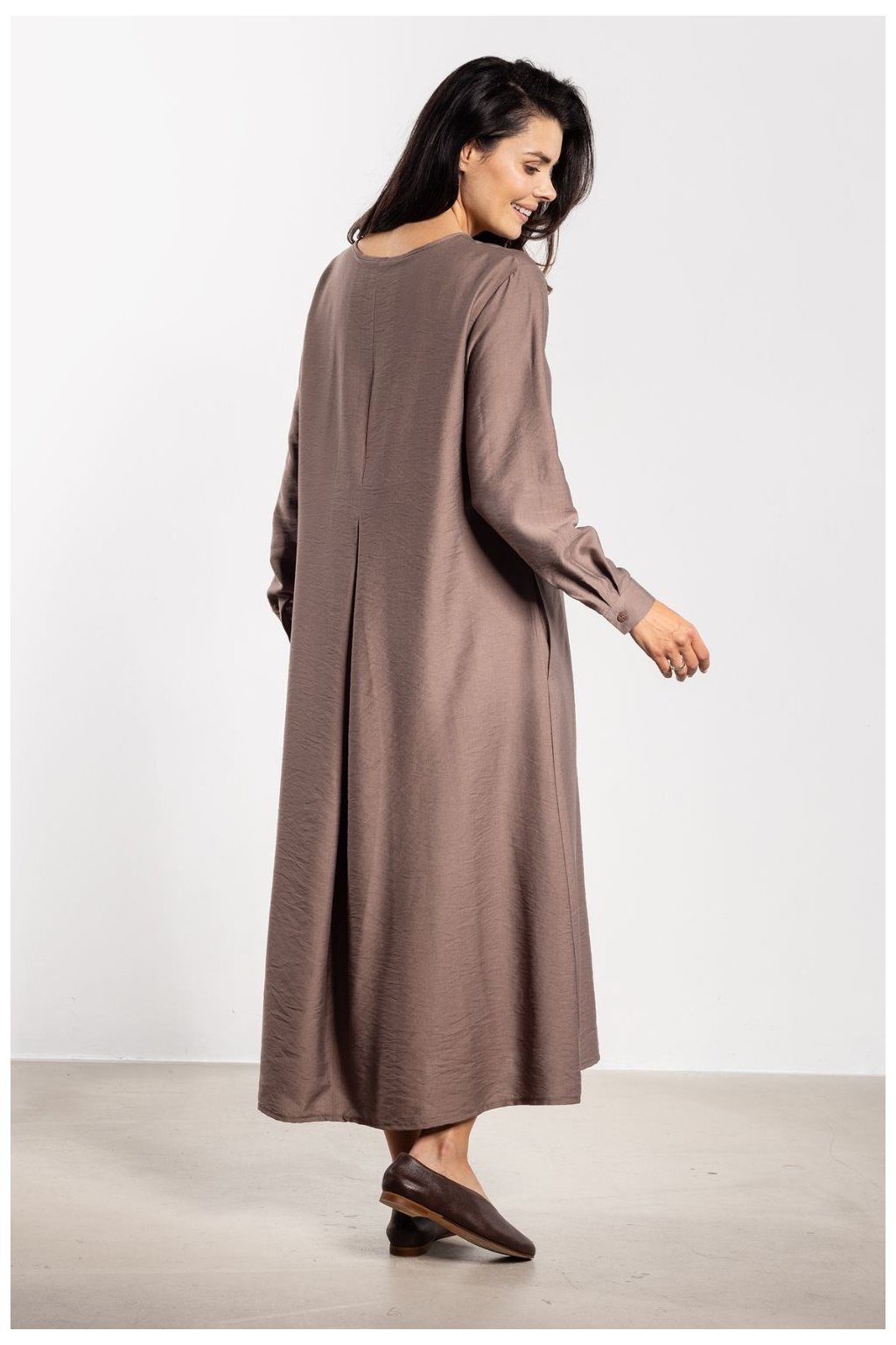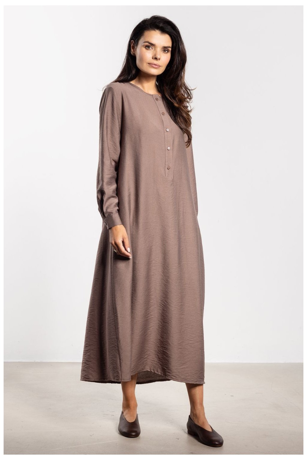 Maxi šaty s jednoduchým střihem A spojují eleganci s pohodlím na každodenním nošení. Délka ke kotníkům jemně prodlužuje postavu a minimalistický střih vypadá moderně. Na přední straně je řada drobných knoflíků, které dodávají lehkost. Pásek ze stejného materiálu umožňuje nosit šaty volně nebo zdůraznit pas, což zvýrazní ženské proporce. Dlouhé rukávy s manžetami zajistí pohodlí a nadčasový charakter, díky čemuž se tento model hodí jak do každodenních, tak elegantních stylizací.Rayon 80 %