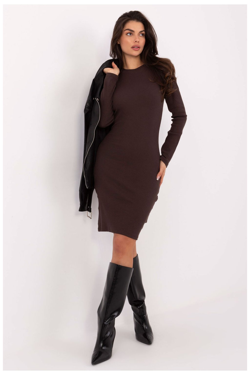Elegantní a pohodlné šaty typu bodycon vyrobené z pruhované pleteniny jsou ideální volbou na každý den i do práce. Klasický, přiléhavý střih tužkových šatů zdůrazňuje ženskou siluetu a zároveň poskytuje pohodlí při nošení. Vyrobené z měkké a elastické směsi bavlny a elastanu se perfektně přizpůsobují tělu a neomezují pohyb. Hladký vzor a minimalistický střih dělají z šatů velmi univerzální kousek, který lze kombinovat jak s elegantními botami, tak s sportovními teniskami. Model má kulatý výstřih a dlouhé rukávy, což je ideální volbou pro chladnější dny. Bez zapínání zaručuje pohodlí a snadnost oblékání. Délka před kolena přidává ženskost a zachovává zároveň decentní eleganci ideální na každý den, do kanceláře nebo na setkání s přáteli.Elastan 10 %