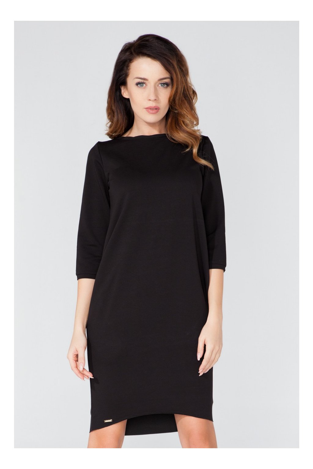 Elegantní pletené šaty s kapsami na bocích. Řez tubou. Rukávy a výstřih jsou zakončeny lemem. Spodní část šatů zůstala nezpracovaná. Rukávy 3/4 délky.Elastan 8 %