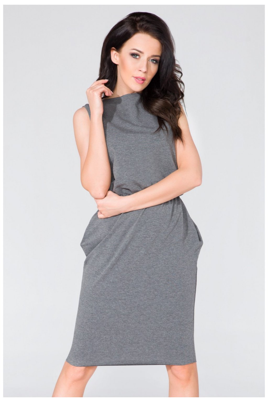 Oblečte se do úpletového oblečení se střihem, který zakryje nedokonalosti postavy. Kapsy ve švu na bocích. Jemně stažené v pase. Spodní část a výstřih jsou ponechány v surovém stavu.| Velikost | Délka | Obvod beder | Obvod prsou | Obvod v pase |