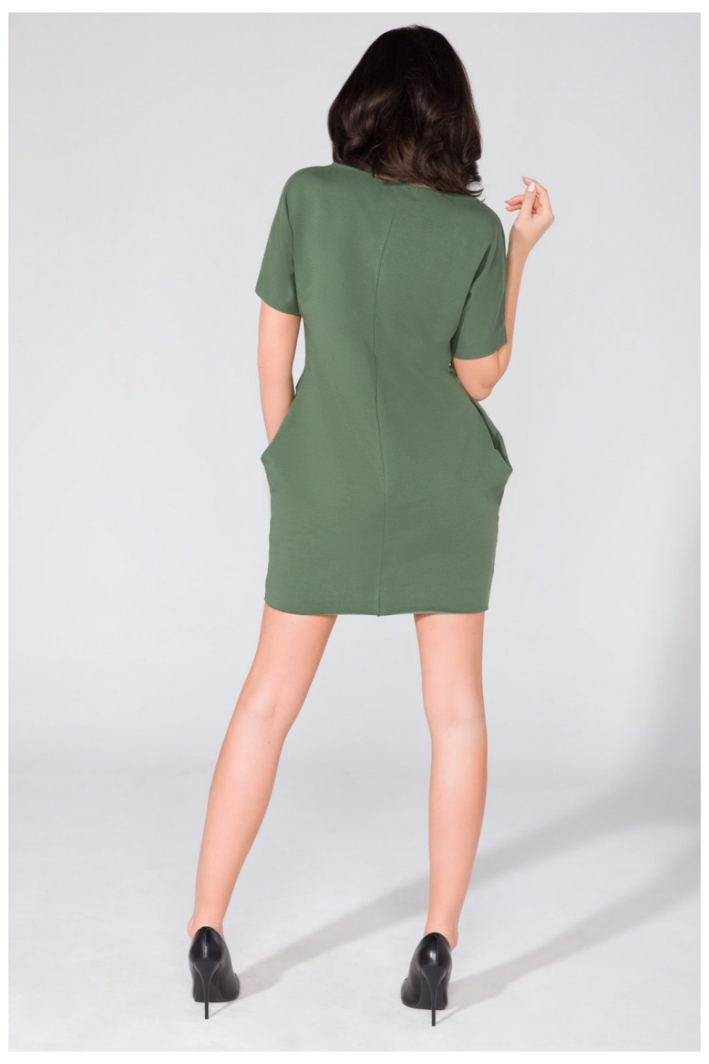 Šaty širokého střihu s kapsami na bocích. Výstřih, rukávy a spodní část zůstaly nezpracované.Složení: 70 % bavlna, 22 % polyester, 8 % elastan.