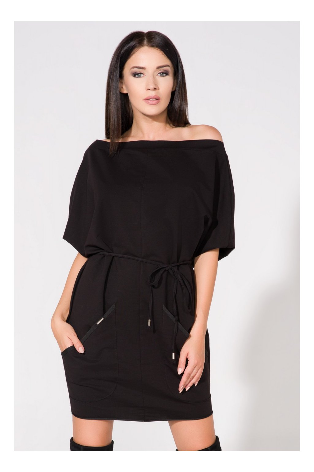 Pletené šaty volného střihu s velkými kapsami na přední straně. Lodičkový výstřih zakončený lemem.Složení látky: 70 % bavlna, 22 % polyester, 8 % elastan.