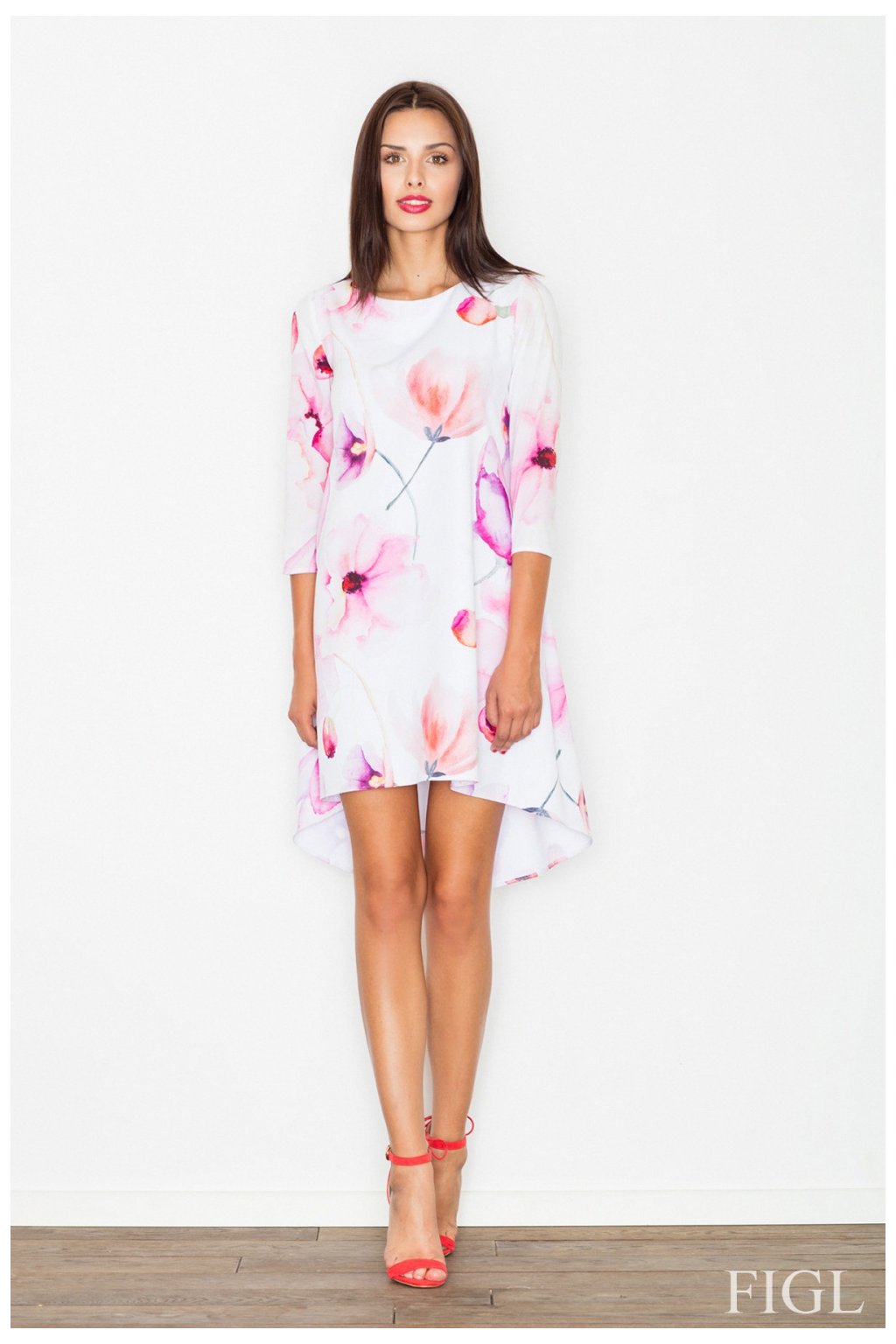 Šifonové midi šaty s obálkovým výstřihem, dlouhými rukávy a páskem. Šaty z bílé látky s květy a zelenými listy. Značka numoco. Evropská výroba.