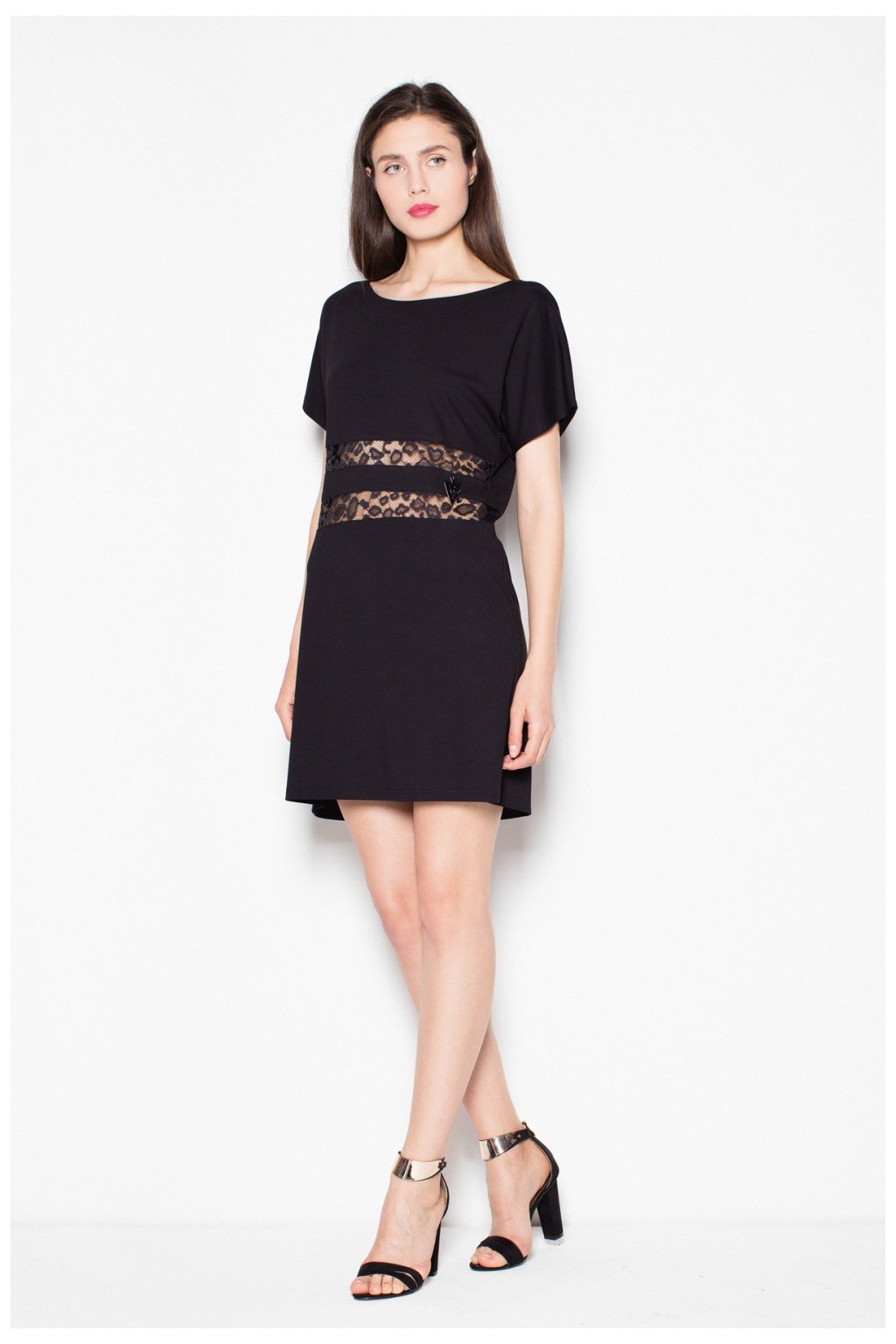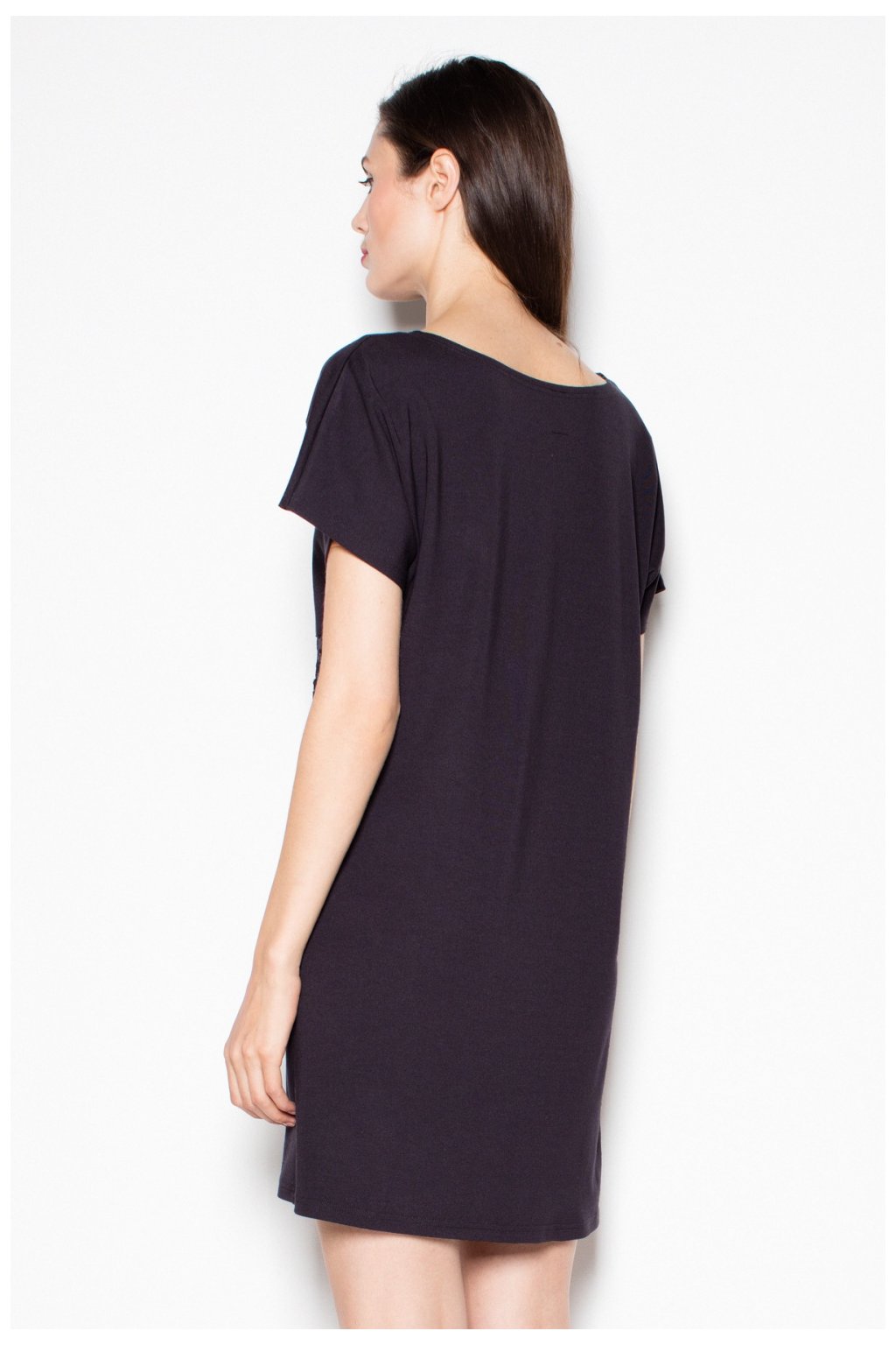 Šaty v délce ke kolenům s 3/4 rukávy, zavazují se v pase. Jemné prošívání pěkně tvaruje siluetu. Boční rozparky dodávají šik a eleganci.
