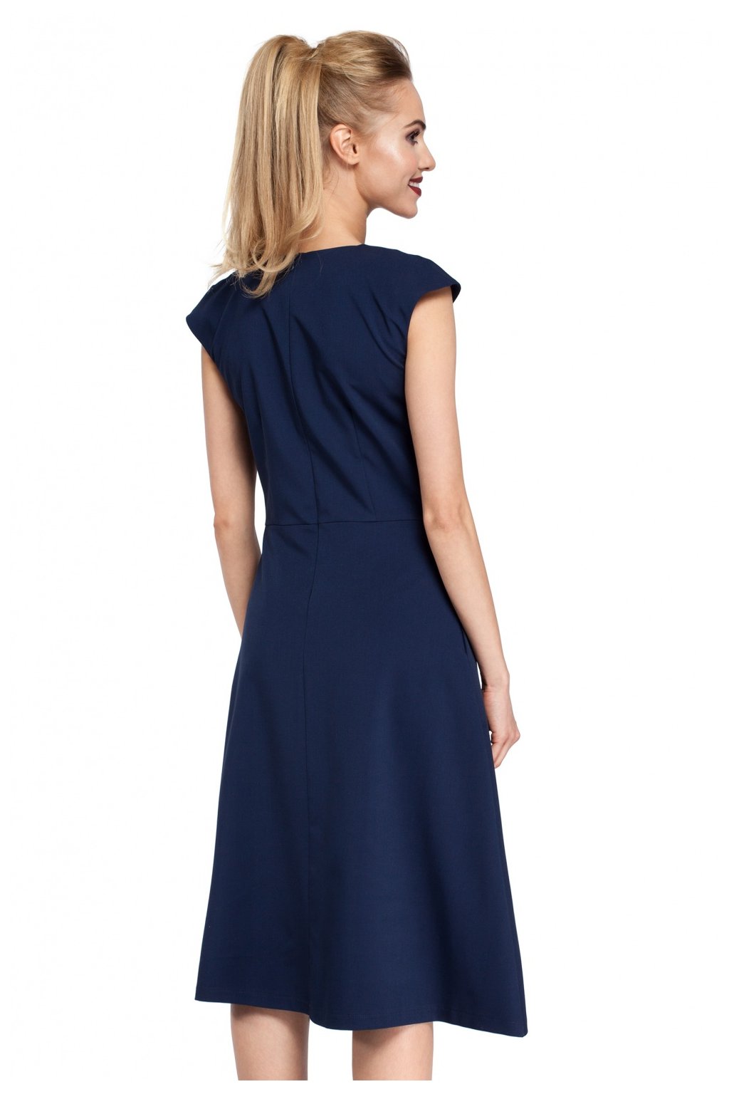 Elegantní midi šaty s asymetrickou kosticí a krátkými rukávy - chrpově modré. Šaty opticky zeštíhlují pas a zakrývají nedokonalosti v oblasti boků.…