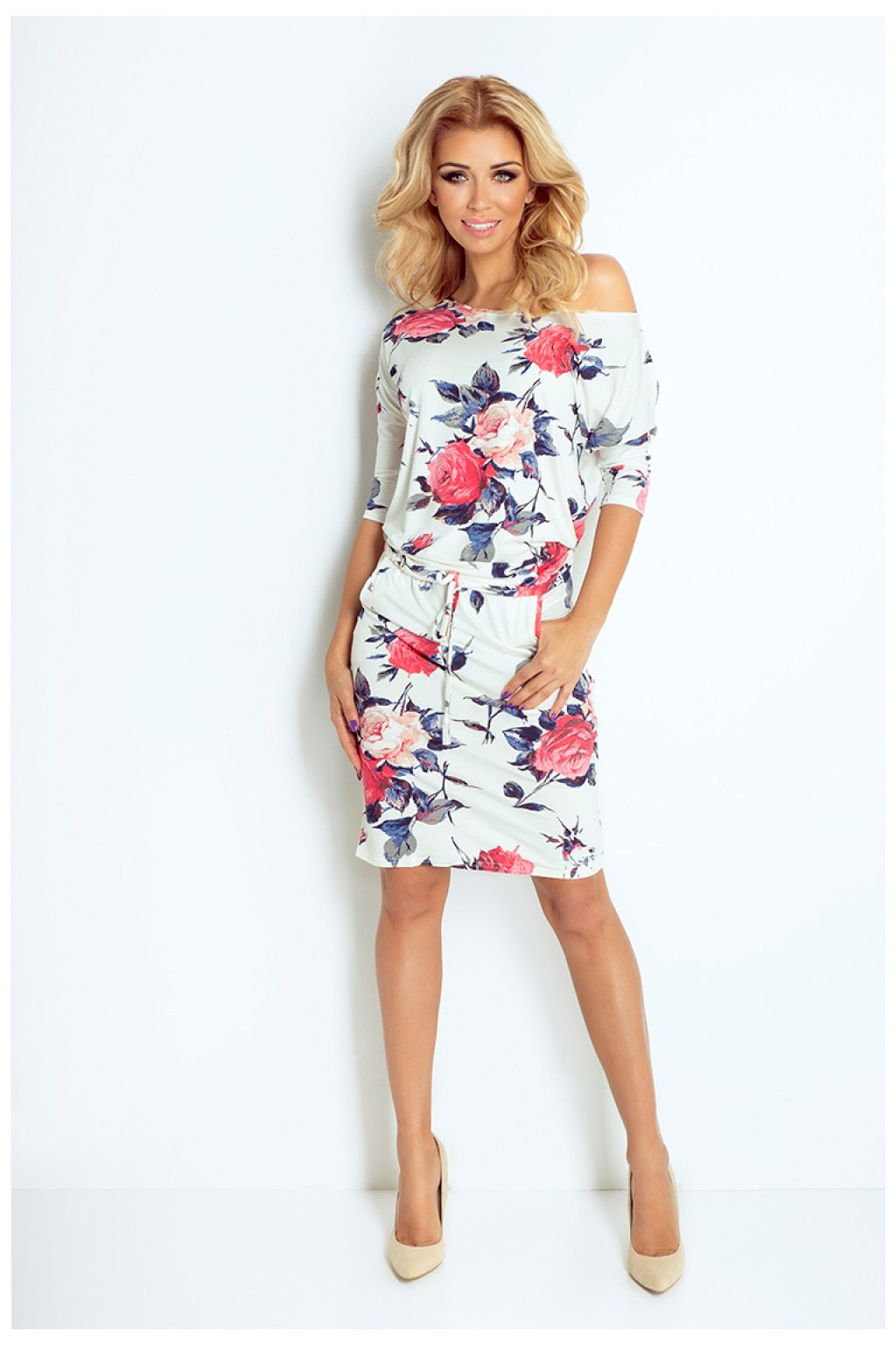 Šaty v délce ke kolenům s 3/4 rukávy, zavazují se v pase. Jemné prošívání pěkně tvaruje siluetu. Boční rozparky dodávají šik a eleganci.