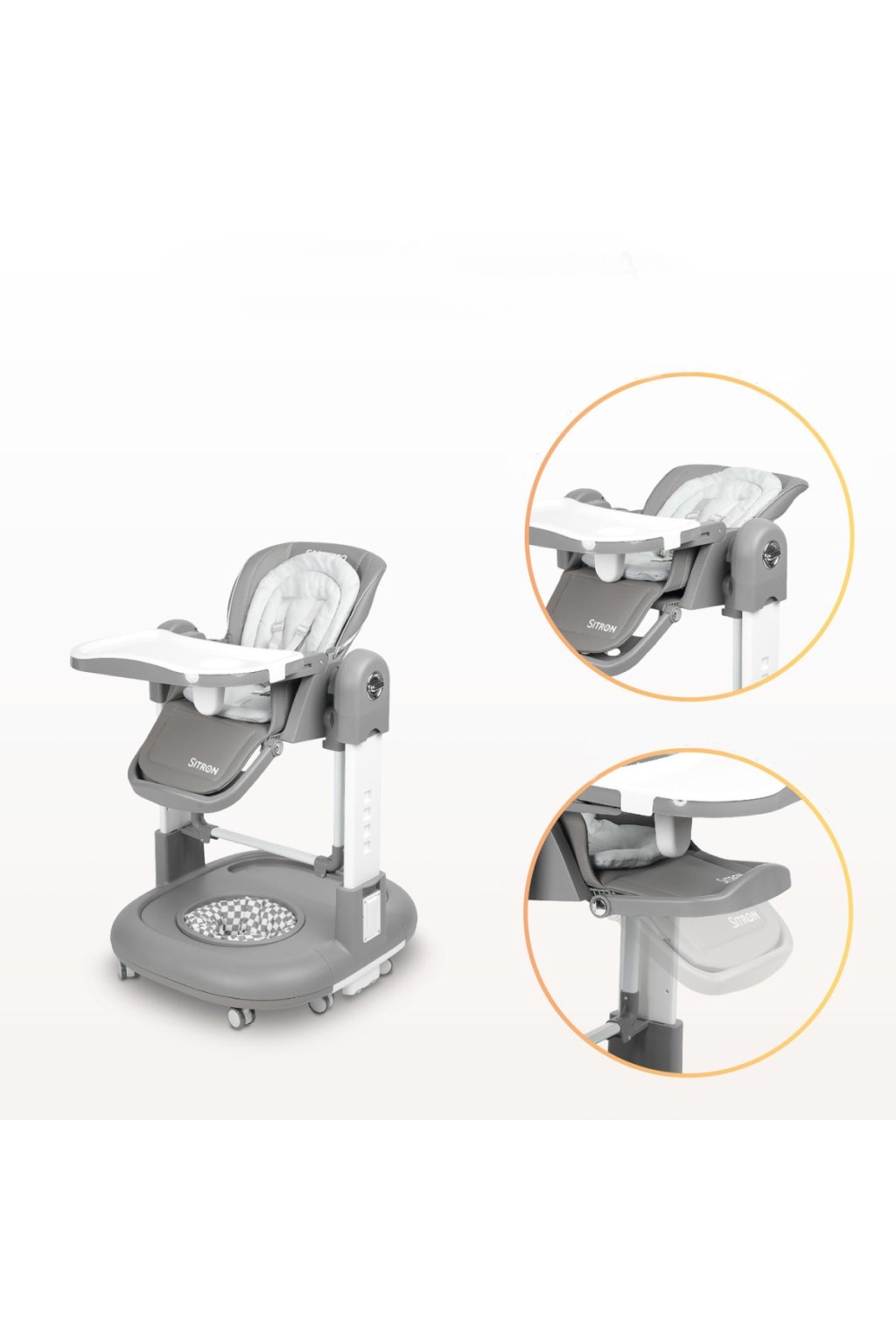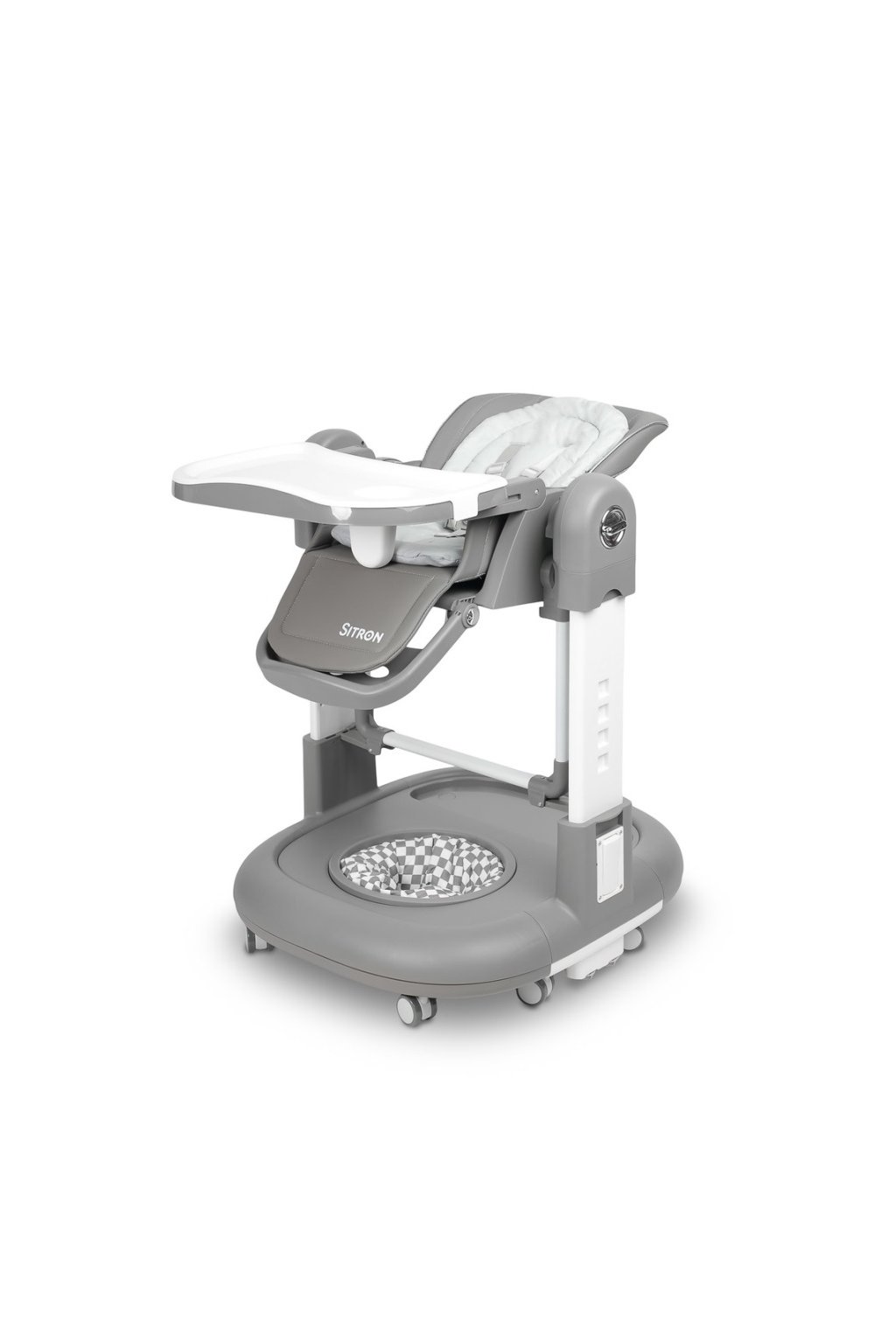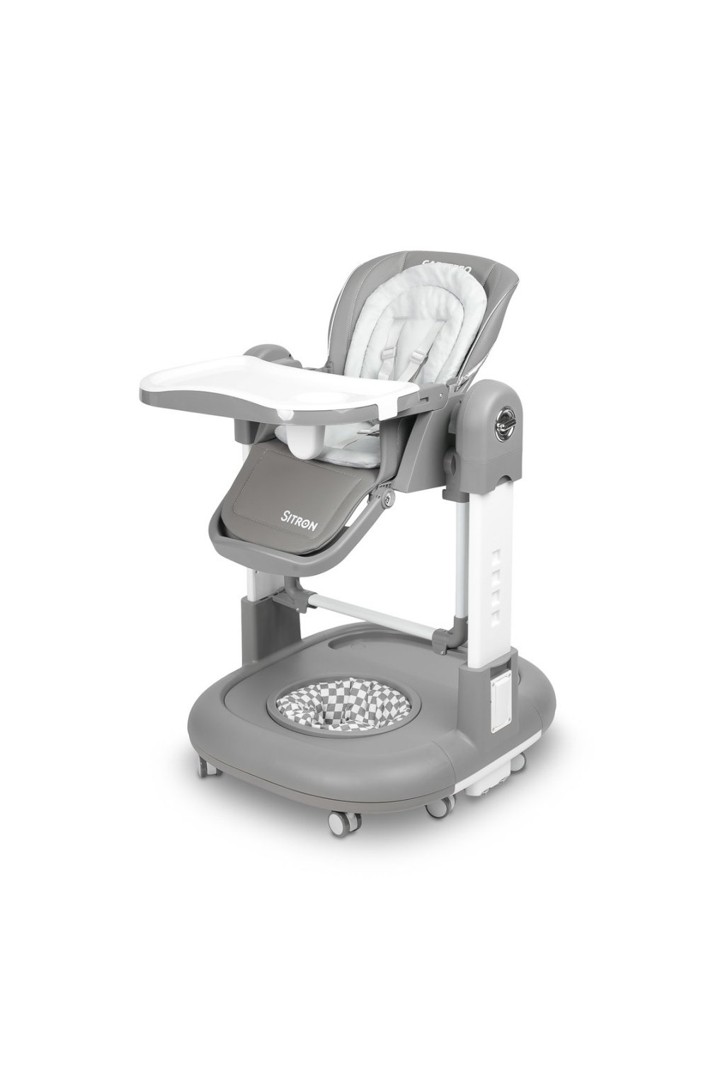 Dětská multifunkční židlička Sitron 3v1 – krmení, houpačka a chodítko - šedá