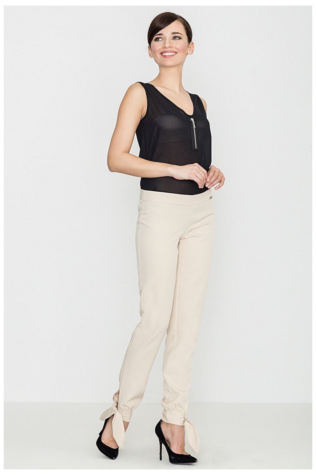 Model s rovnýma, dlouhýma nohama. Ozdobný detail mašle ve spodní části. Jejich originální střih úspěšně dotvoří oficiální image a dodá styl večerním outfitům.