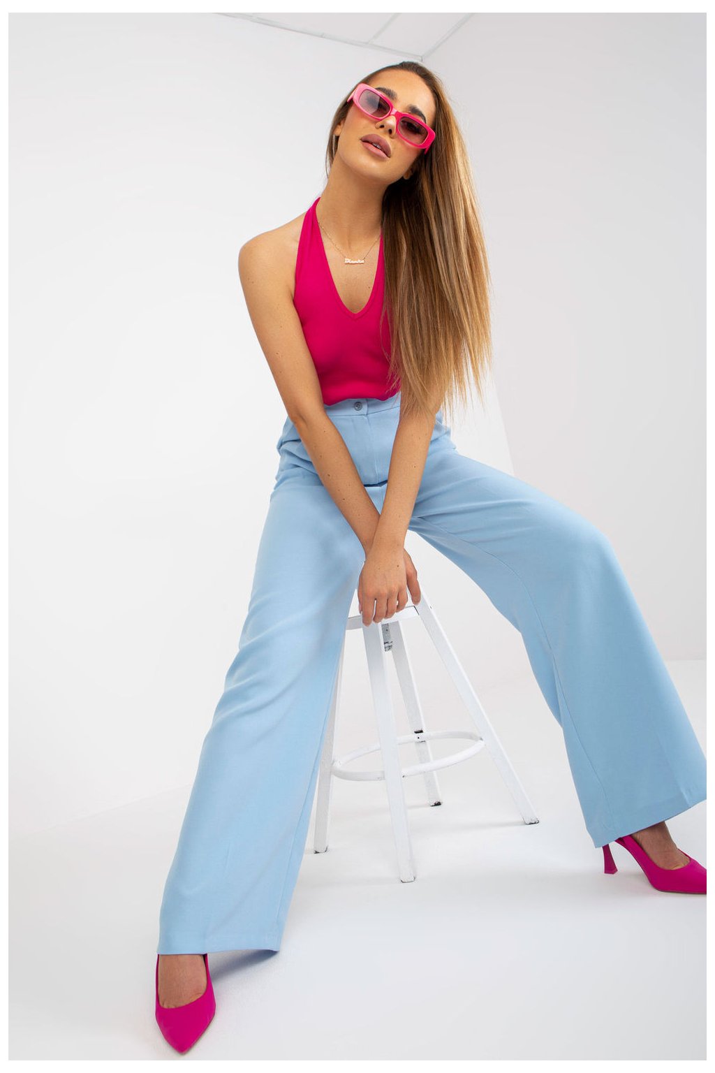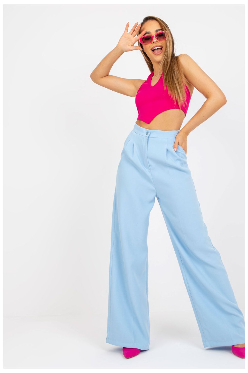 Dámské dlouhé kalhoty s vysokým pasem a zapínáním na zip a knoflík. Kapsy na bocích. Ideální k různým outfitům.