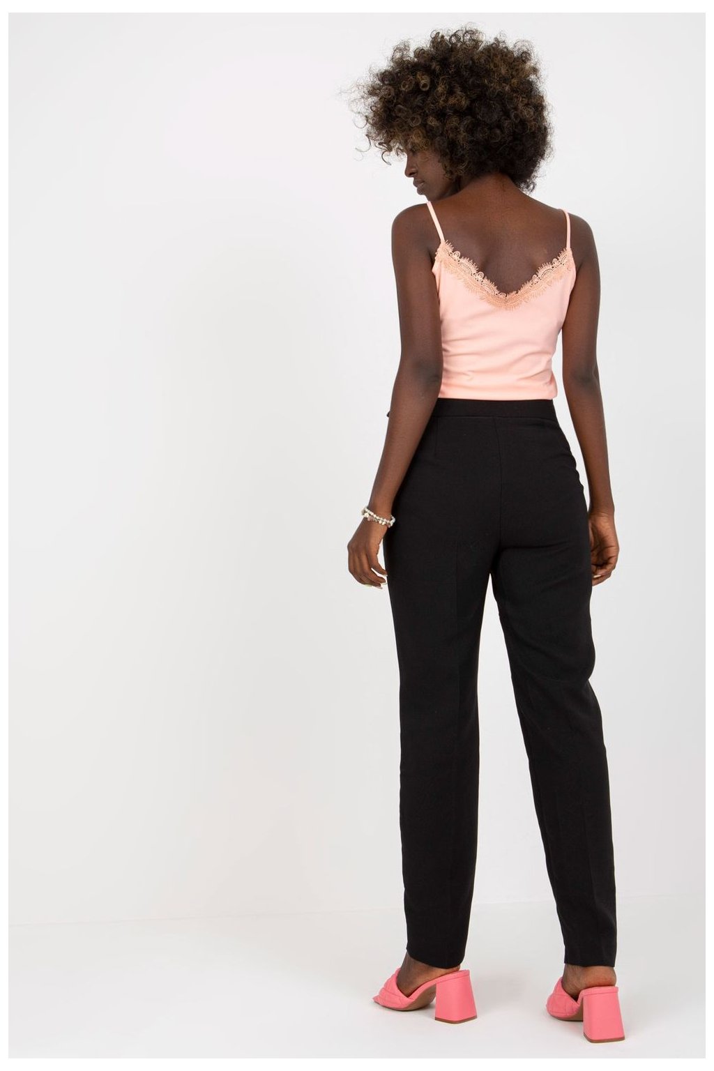 Dámské kalhoty s rovnými nohavicemi, zapínáním na knoflík a zip. Kalhoty s vysokým pasem a nakládanými kapsami na bocích.
