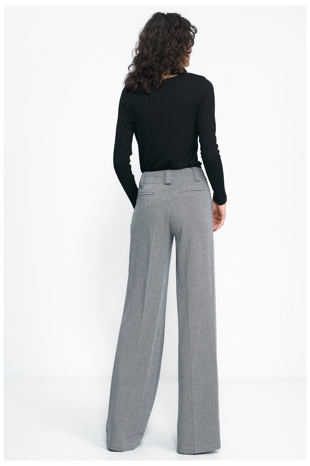 Po mnoha sezónách, kdy dominovaly úzké kalhoty, se vracejí modely se širokými nohavicemi. Široké kalhoty tvoří harmonickou dvojici se sakem stejného vzoru. Mají mírně vyšší střih, který opticky prodlužuje siluetu.