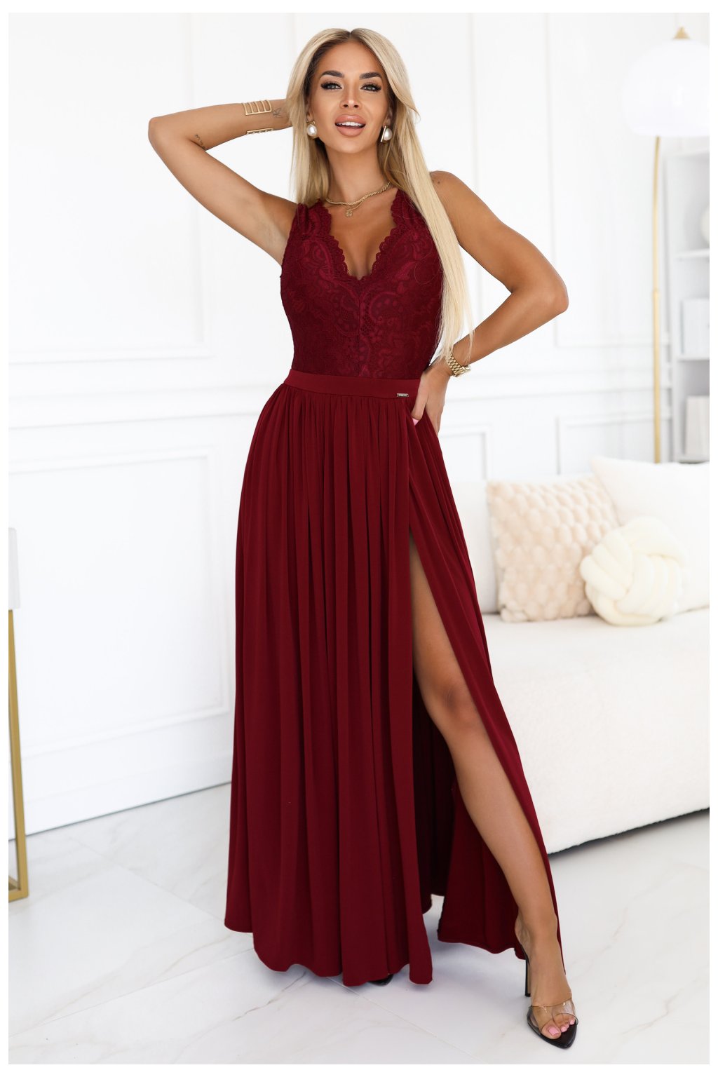 Šaty LEA značky Numoco jsou elegantním návrhem vytvořeným pro speciální příležitosti. Vrchní část vyrobená z efektní krajky krásně zdůrazňuje výstřih, zatímco odkrytá záda dodávají celku smyslný charakter. Dlouhá sukně s vysokým rozparkem na noze opticky zúží postavu a zdůrazní nohy. Šaty LEA spojují klasickou eleganci a moderní šarm. Díky přiléhavé horní části a efektnímu rozparku budete vypadat oslnivě a cítit se sebejistě na každé slavnostní události.
