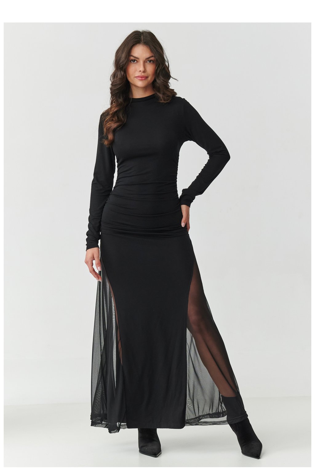 Objevte neuvěřitelně ženské a elegantní maxi šaty, vytvořené pro ženy, které oceňují klasiku s nádechem smyslnosti. Přizpůsobený střih krásně zdůrazňuje postavu, vystavujíce ženské tvary jemným, ale výrazným způsobem. Hluboké a průhledné vložky z tylu po stranách dodávají celému outfitu lehkost a sex appeal a výjimečný charakter. Zakrytý, klasický výstřih je poklonou nadčasové eleganci, vyvažuje odvážnější prvky šatů a dokonale zdůrazňuje linii krku a ramen. Právě tento kontrast dělá celkový dojem stylovým, elegantním a trochou tajemným. Na zádech šatů je diskrétní, skrytý zip, který zajišťuje pohodlné oblékání a perfektní přizpůsobení postavě. Jedná se o praktické řešení, které neodvádí pozornost od efektního střihu, a zároveň zajišťuje pohodlí nošení. Šaty jsou k dostání pouze v klasické, nadčasové černé barvě, která zdůrazňuje jejich eleganci a univerzální charakter. Jedná se o odstín, který nikdy nevyjde z módy, zúžuje postavu a dělá, že outfit vždy vypadá elegantně. Jedná se o ideální návrh na speciální příležitosti, kdy chcete cítit krásně, sebevědomě a výjimečně. Nejde jen o šaty, je to způsob, jak vyjádřit sebe sama.