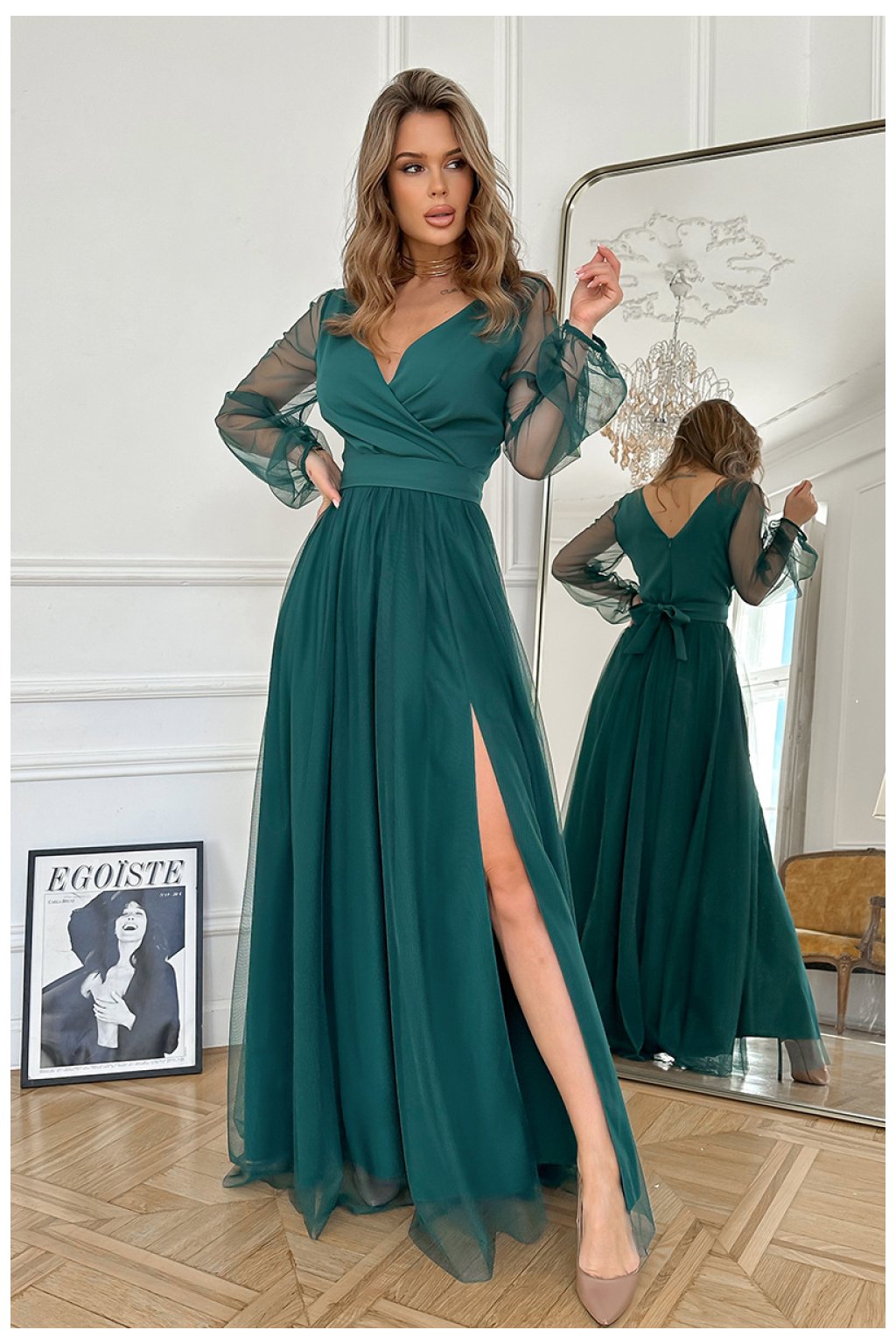 Krásné dlouhé šaty, neuvěřitelně elegantní, vyrobené z lehké látky. Vrchní část s jemným výstřihem, spodní část dvouvrstvá s rozparkem na noze, dodávající šatičce půvabu. Šaty se zapínají na skrytý zip. K šatičkám je přiložený pásek. K dispozici v módních barvách. Složení: Podšívka vrchní části: 70% polyester, 30% viskóza Látka 1: 93% polyester, 7% elastan Látka 2: 100% polyester| Velikost | Délka | Obvod prsou | Obvod v pase |