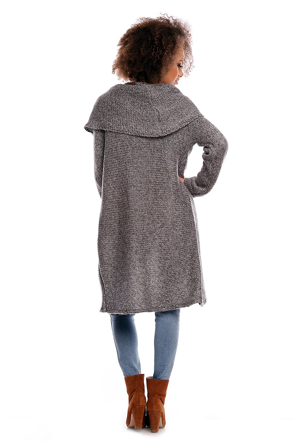 Dlouhý svetr s širokým, volným rolákem s asymetrickým, překrývajícím se předním dílem je elegantní a jedinečný návrh pro ženy, které ocení pohodlí, teplo a originální vzhled. Svetr lze nosit samostatně nebo jako další pokrývku. Kabátek je vyroben z měkké a nadýchané příze, obléká se přes hlavu.