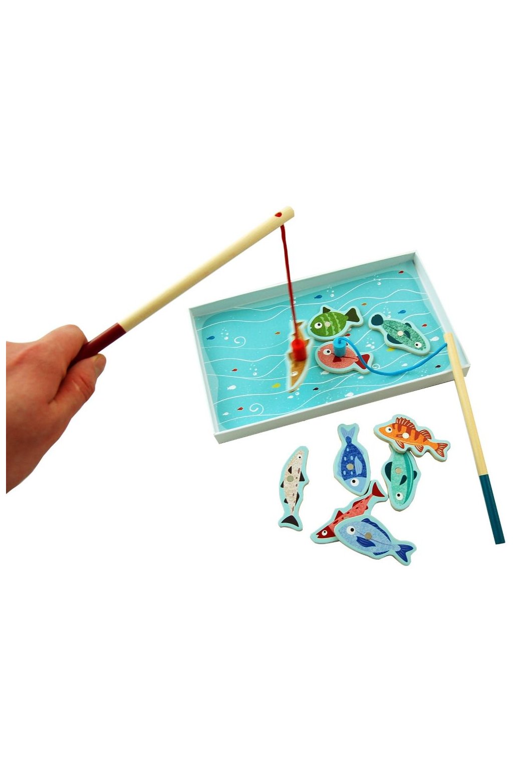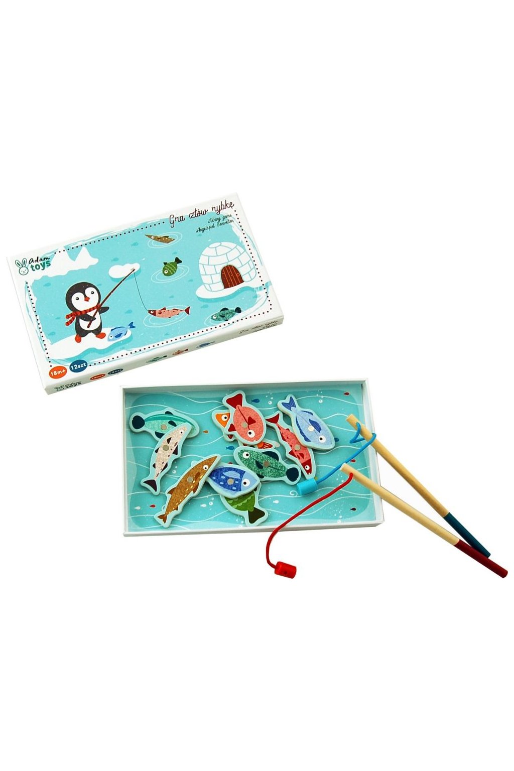 Dřevěná hra Tučňák na rybách. Užijte si spoustu zábavy s chytáním rybiček. Hra obsahuje: - 10 ks dřevěných barevných rybiček (každá rybička je označena z druhé strany počtem bodů), - 2 ks udice, - 1 ks kartónová krabička. Hra je určena maximálně pro 2 hráče. Vhodné pro děti od 18 m+. Rozměr krabičky: 28,5 x 17 x 3 cm. Rozměry rybičeky: šířka od 3 do 4,5 cm, délka od 6,5 do 10 cm. Rozměr udice: délka: 22 cm, délka šňůrky: 19 cm. VAROVÁNÍ! Hračka obsahuje magnety nebo magnetické součástky.Doplňkové parametry