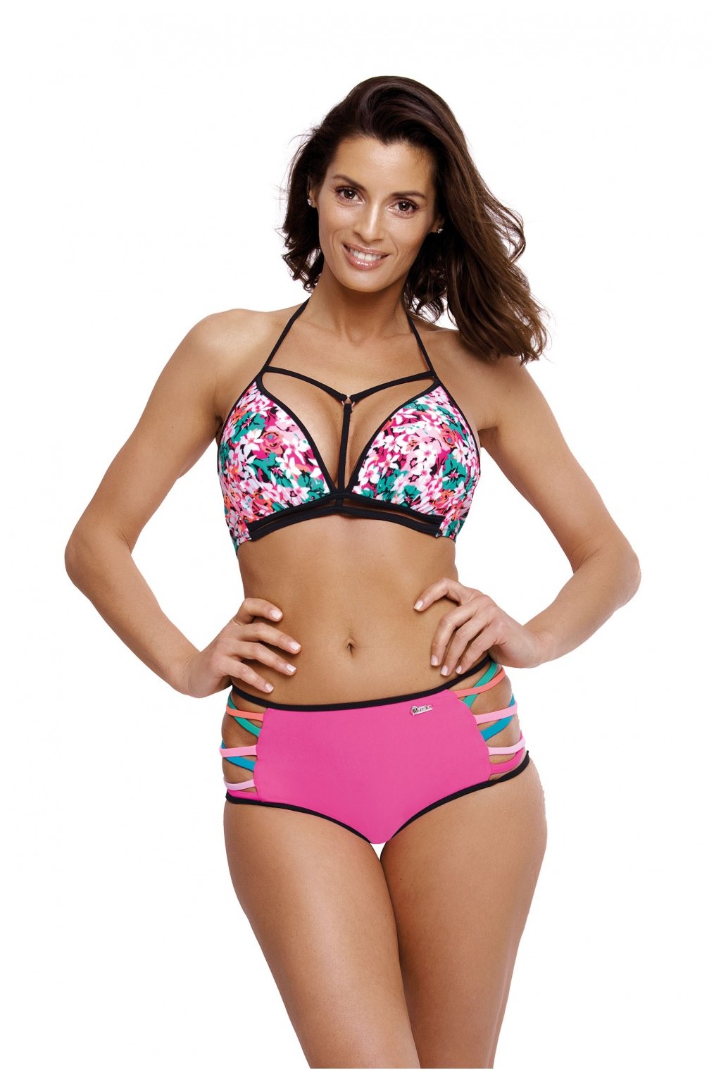 Jedny z nejzajímavějších plavek z kolekce na léto 2019, výrobce Marko. Model Molly M-504, který kombinuje několik módních plážových trendů. Černé pruhované gumičky ve výstřihu, ozdobné lemování pod prsy, pruhy na bocích, květiny a vysoké nohavičky, které vám zaručí naprosté pohodlí, a to není vše... Podprsenka má vyztužené košíčky s push-up efektem, které umožňují pěkně shromáždit a vytvarovat prsa a krásně je prezentovat ve výstřihu. Push-up je v modelu trvale umístěn, není z plavek vyjímatelný a dodává se ve všech velikostech. Podprsenka se zavazuje jako bikiny, vzadu i za krkem. Květinový vršek se krásně hodí k hladkému spodnímu dílu. Krásné barvy a italská tkanina nejvyšší kvality. To je ono!