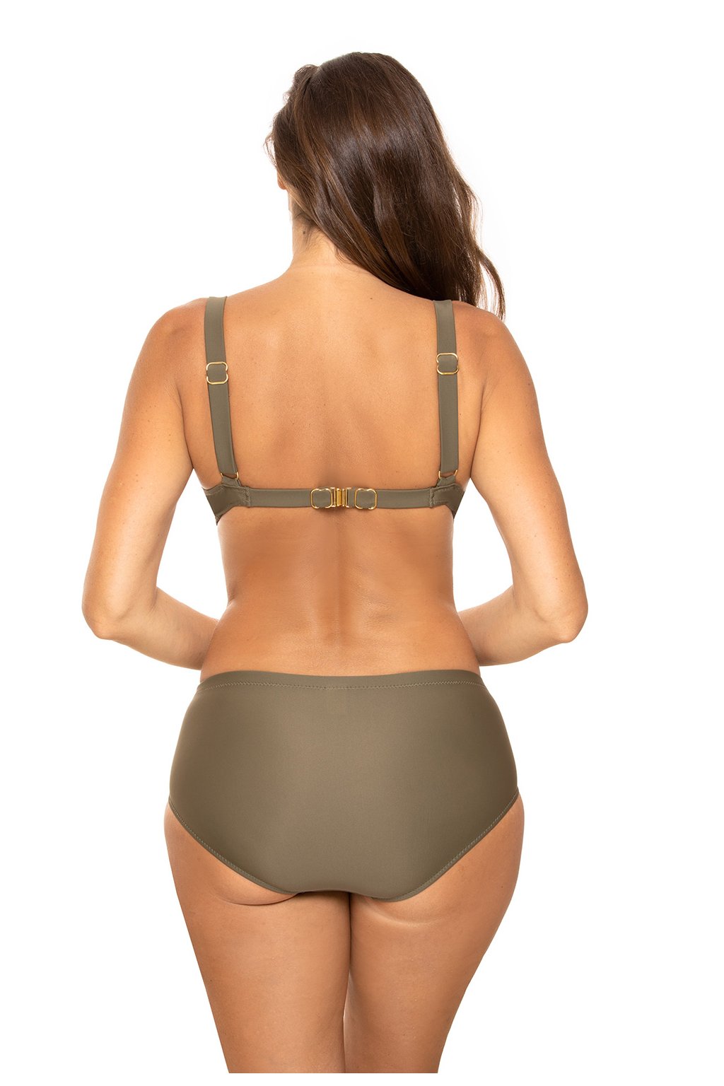 Dvoudílné plavky ve sportovním stylu z italské tkaniny Carvico Tessuti. Podprsenka bez push-up efektů, s kosticemi ve spodní části, pro větší poprsí. Podprsenka s hlubokými, pohodlně vyztuženými košíčky, zapínání na zádech. Nastavitelné popruhy, neodnímatelné. Kalhotky jsou hladké, podšité a mají pohodlný vyšší střih. Polský výrobek. Tip: objednejte si větší velikost než obvykle.