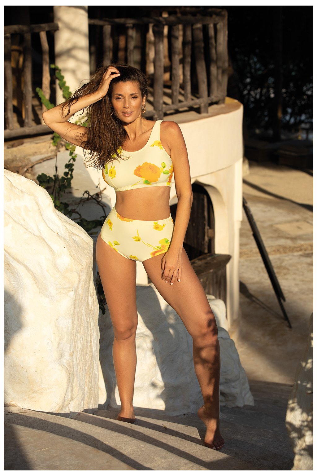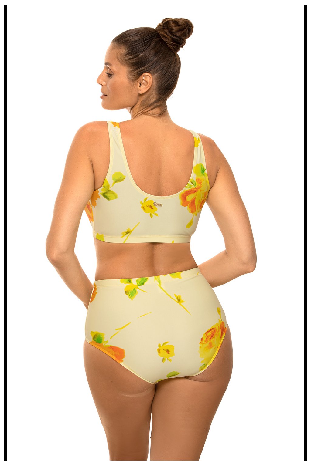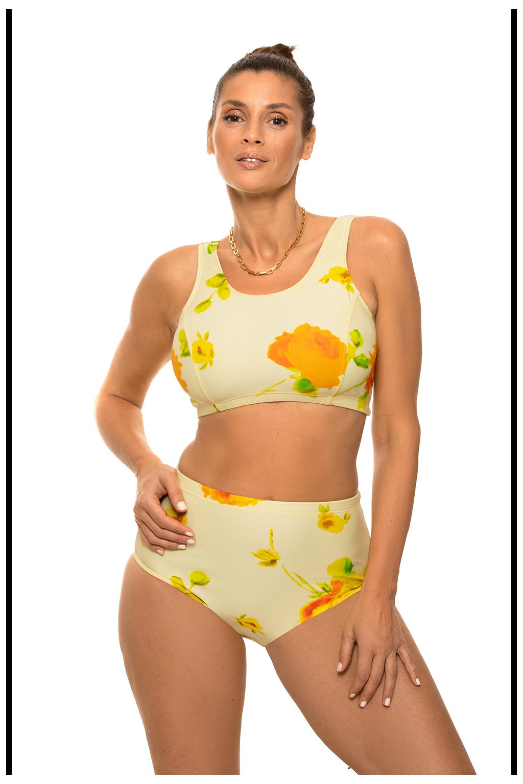 Dvoudílné plavky ve sportovním stylu. Perfektně sedí. Podprsenka v podobě elastického topu bez velrybích kostic, vyjímatelné vložky. Kalhotky s vysokým pasem. Vyrobeno z italské tkaniny Carvico Tessuti. Krásné barvy zdůrazňují opálení. Polský výrobek.