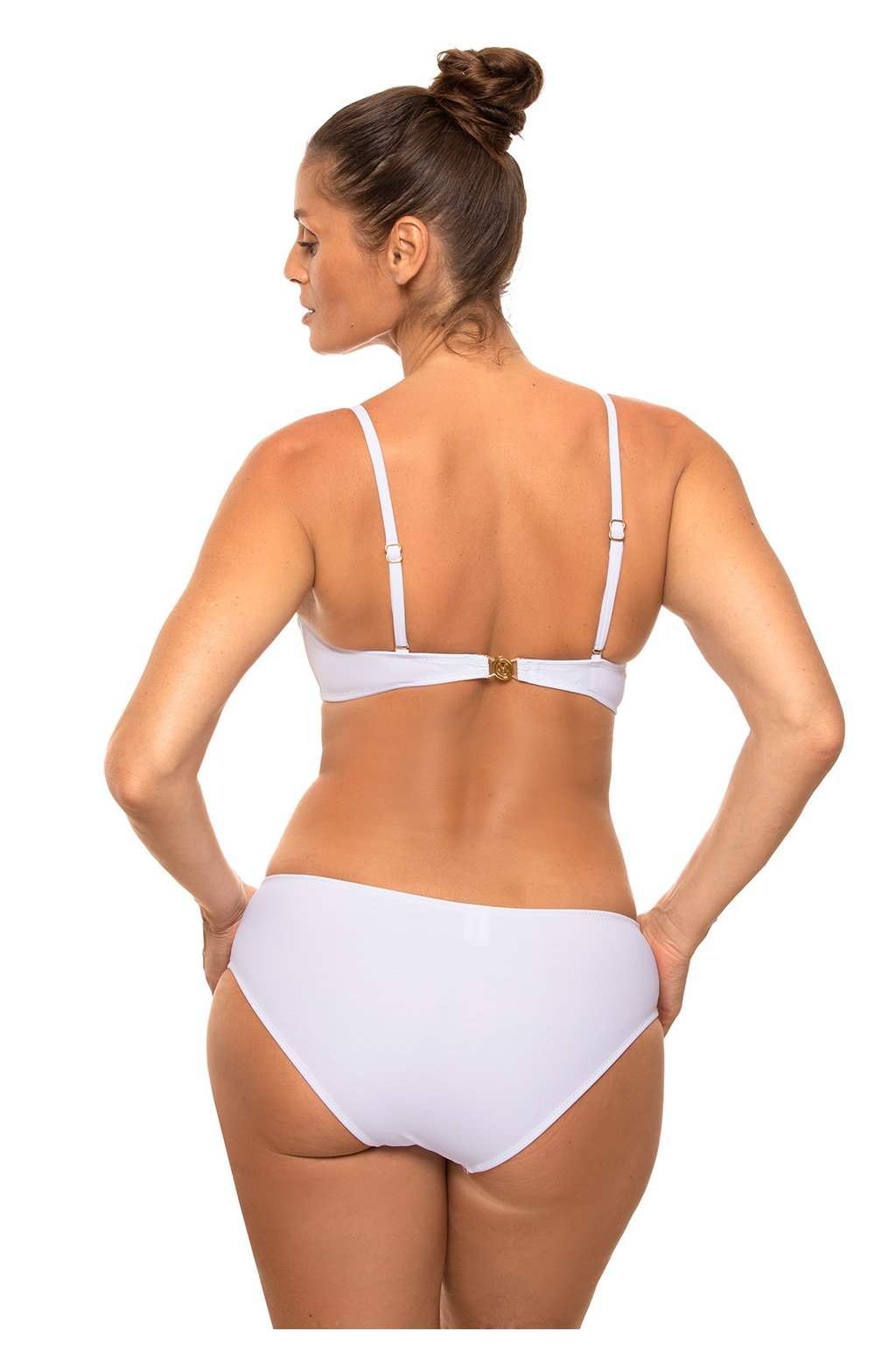 Dvoudílné plavky s push-up efektem pro krásný a přirozený vzhled. Podprsenka Bardot se zapíná vzadu. Push-up střední velikosti odnímatelný z modelu. Odnímatelné, nastavitelné popruhy. Ideální pro malé a střední poprsí. Kalhotky vyšší, nepříliš pružné. Vyrobeno z italské tkaniny Carvico Tessuti. Polský výrobek.