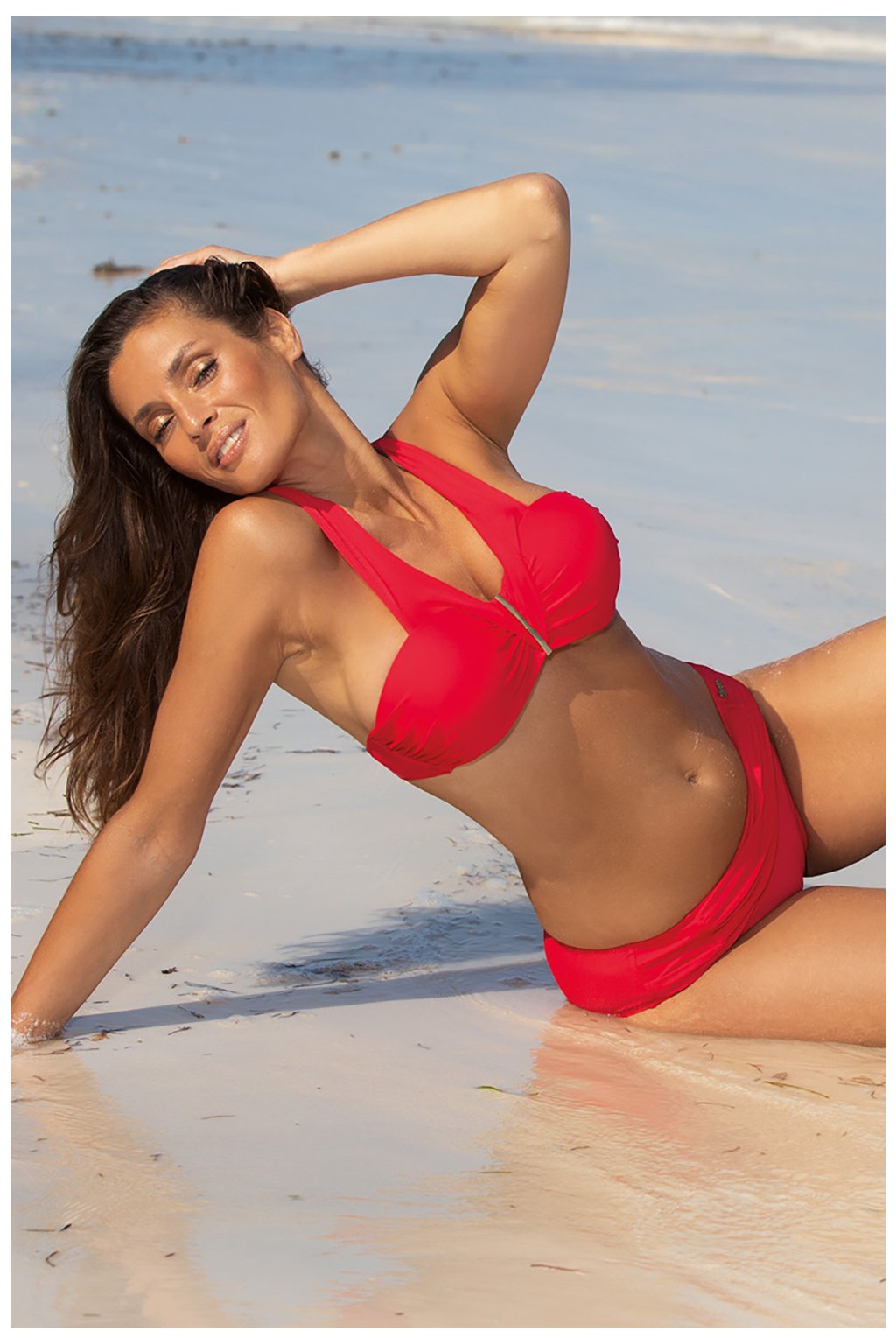 Dvoudílné plavky Marko. Podprsenka Bardot, bižuterní ozdoby, neodnímatelná ramínka, zapínání na zádech, hladká tkanina. Push-up efekt s krásným přirozeným vzhledem, push-up neodnímatelný z modelu, spodní a boční podvazky. Ozdobné prošívání na bocích kalhotek. Kalhotky s nízkou elasticitou, podšité.