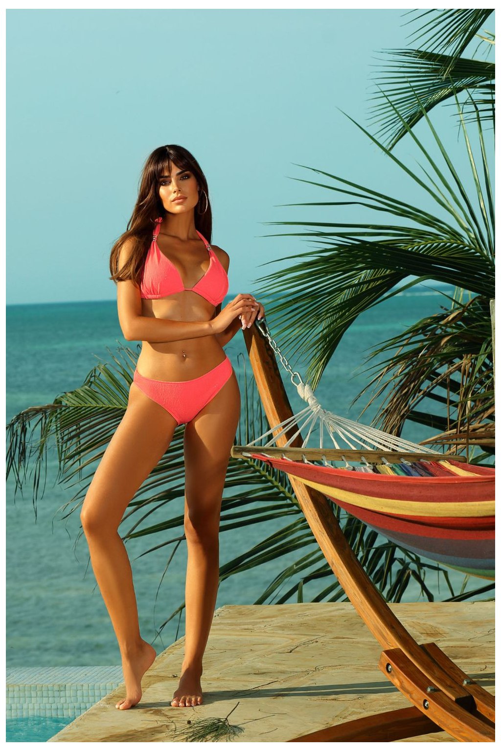 Plavky, které nejen vypadají úžasně, ale také zaručují pohodlí a jistotu na pláži. Klíčovým prvkem této soupravy je vyztužená podprsenka, která poskytuje vynikající oporu. Možnost zavazování na zádech a za krkem umožňuje dokonalé přizpůsobení vašim preferencím a zároveň zaručuje push-up efekt s krásným, přirozeným vzhledem. Ideální pro ženy s malým i středně velkým poprsím. Plavky se skládají ze dvou dílů, což vám dává volnost při jejich přizpůsobování vaší postavě. Kalhotky pohodlného střihu poskytují dostatečné krytí, aniž by přitom ztrácely na eleganci a ženskosti. Měkká a vzdušná tkanina, ze které jsou vyrobeny, bude ideální i v horkých dnech na pláži a zajistí pohodlné nošení po celý den. Plavky jsou navíc baleny v praktickém pouzdře pro snadné skladování a cestování. Zvýrazní přirozené opálení, díky čemuž bude každá žena vypadat úchvatně. Kvalita zpracování těchto plavek je na nejvyšší úrovni, což potvrzuje i fakt, že byly navrženy a ušity v Polsku. Zdobení ve stylu Glamour dodává plavkám šmrnc a eleganci, díky čemuž se každá žena bude na pláži cítit jako hvězda.