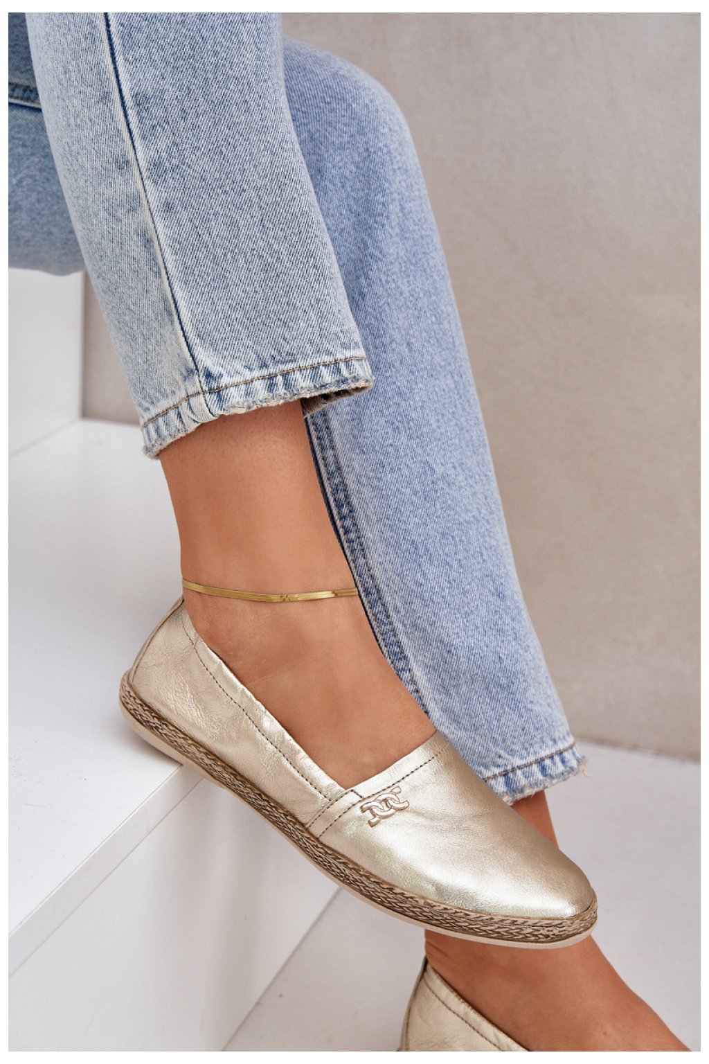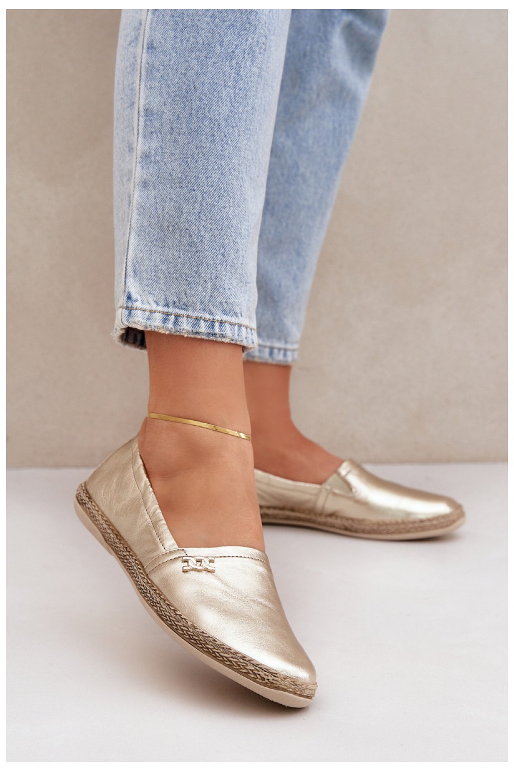 Elegantní dámské espadrilky vyrobené z přírodní kůže jsou skvělou volbou na teplé dny. S plochou podrážkou poskytují pohodlí a lehkost při chůzi. Jemný ozdobný detail na svršku jim dodává jedinečný charakter a měkká kůží vložka zajišťuje pohodlí po celý den. Tyto espadrilky spojují eleganci s ležérním stylem, skvěle ladící v letních outfitěch.