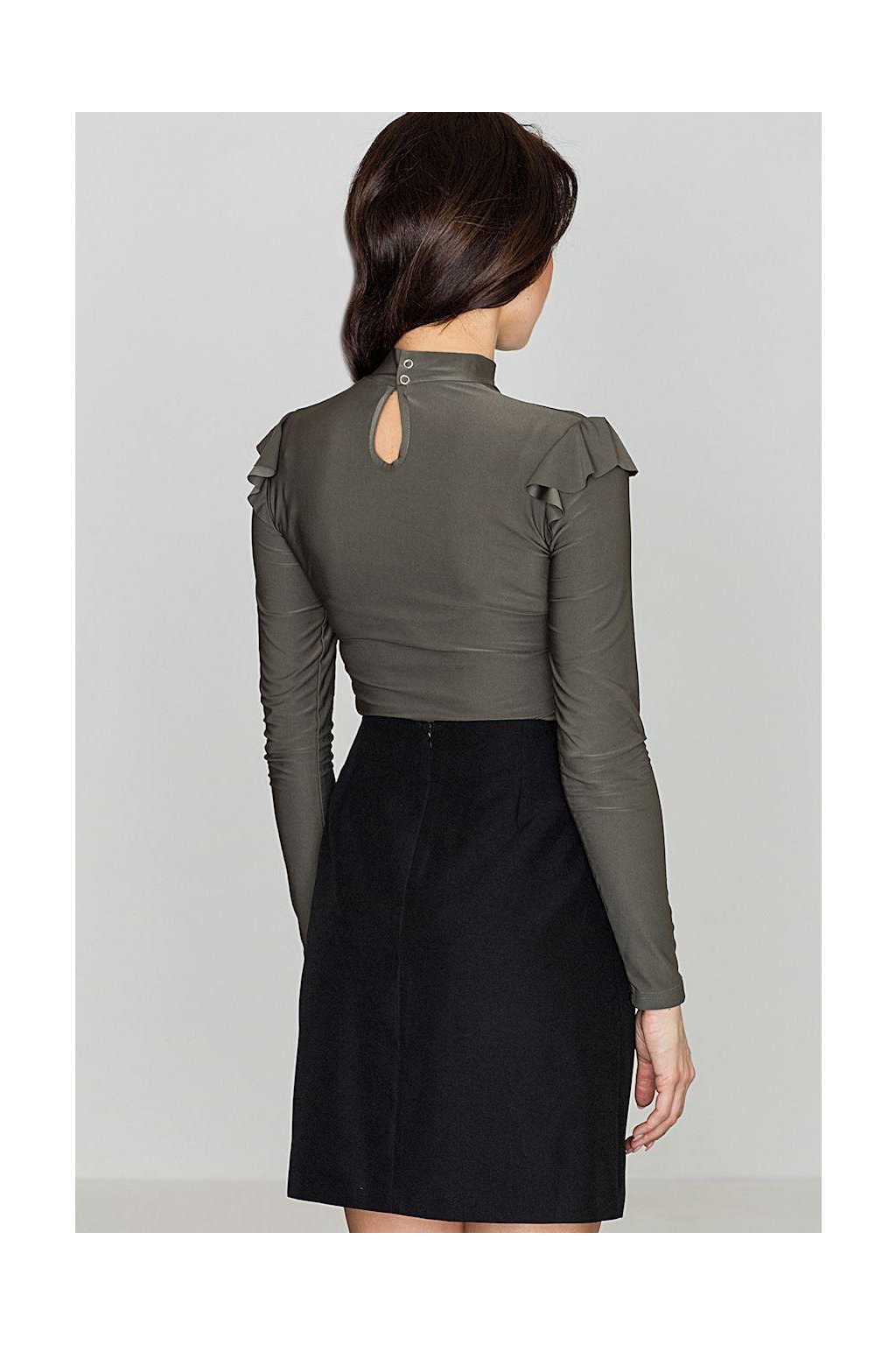 Elegantní halenka s dlouhými rukávy dokonale přiléhá k tělu. Další výhodou je krásný volánkový lem na rukávu, který v pohodlném vydání dodává jemnost a eleganci. Model halenky je ideální pro různé denní doby a doplňuje mnoho stylů.