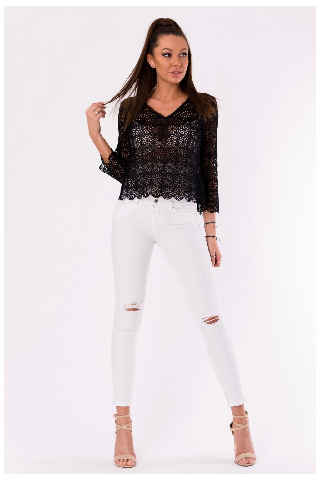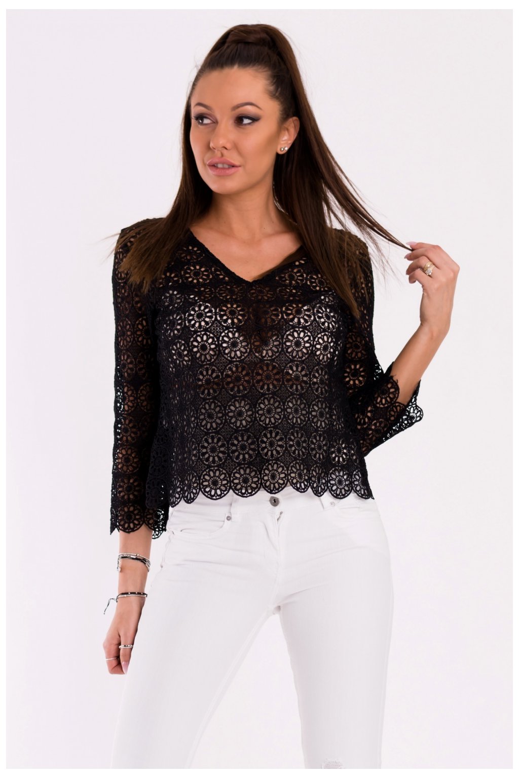 Halenka s dlouhými rukávy a zapínáním na knoflíky na zádech.