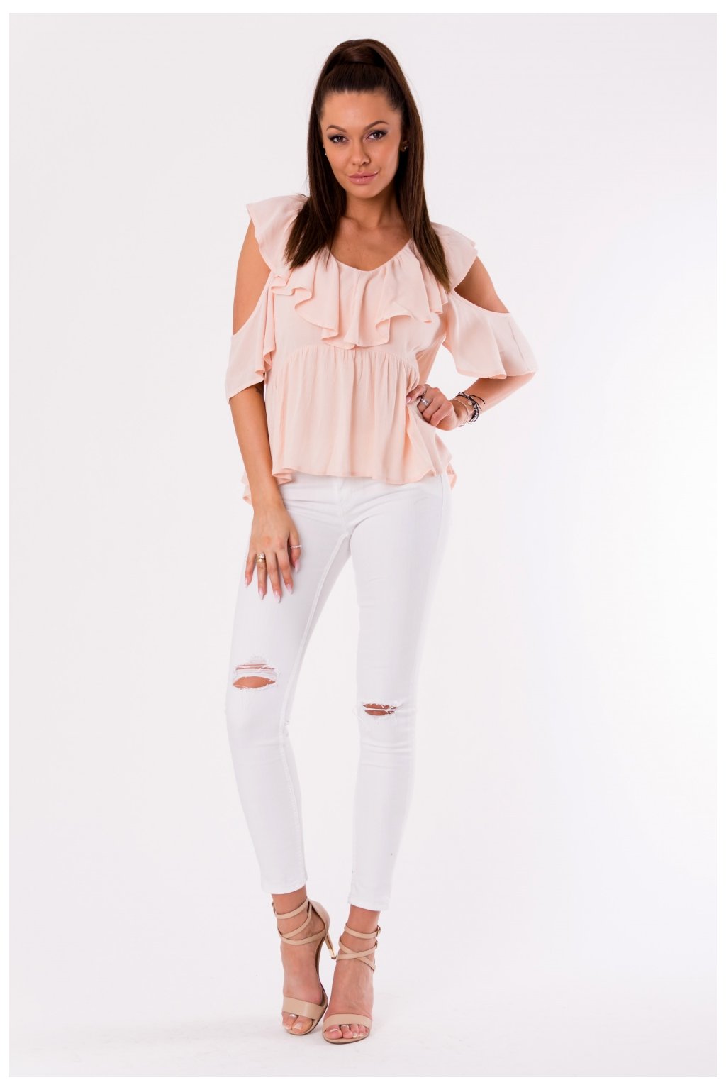 Halenka bez ramen. Halenka má ozdobné volánky.