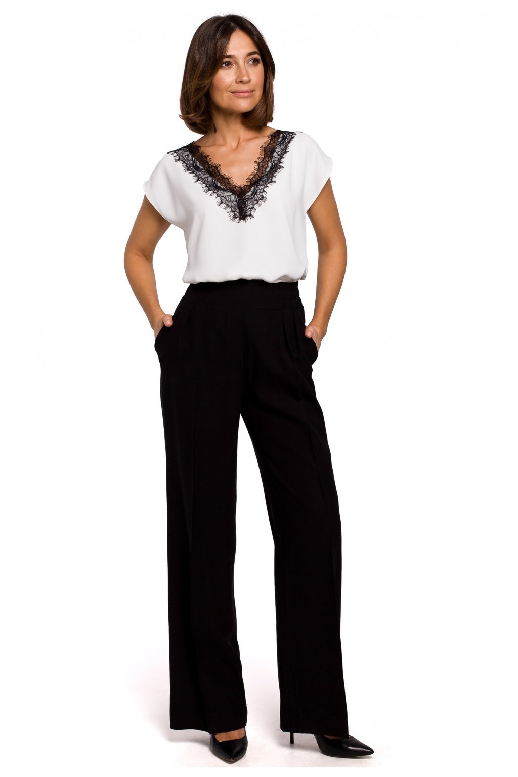 Hladká halenka bez rukávů je základem nejen pro kancelářský outfit. Díky módnímu krajkovému lemování je ideální jako doplněk k saku nebo svetru a oživí nejeden styling.