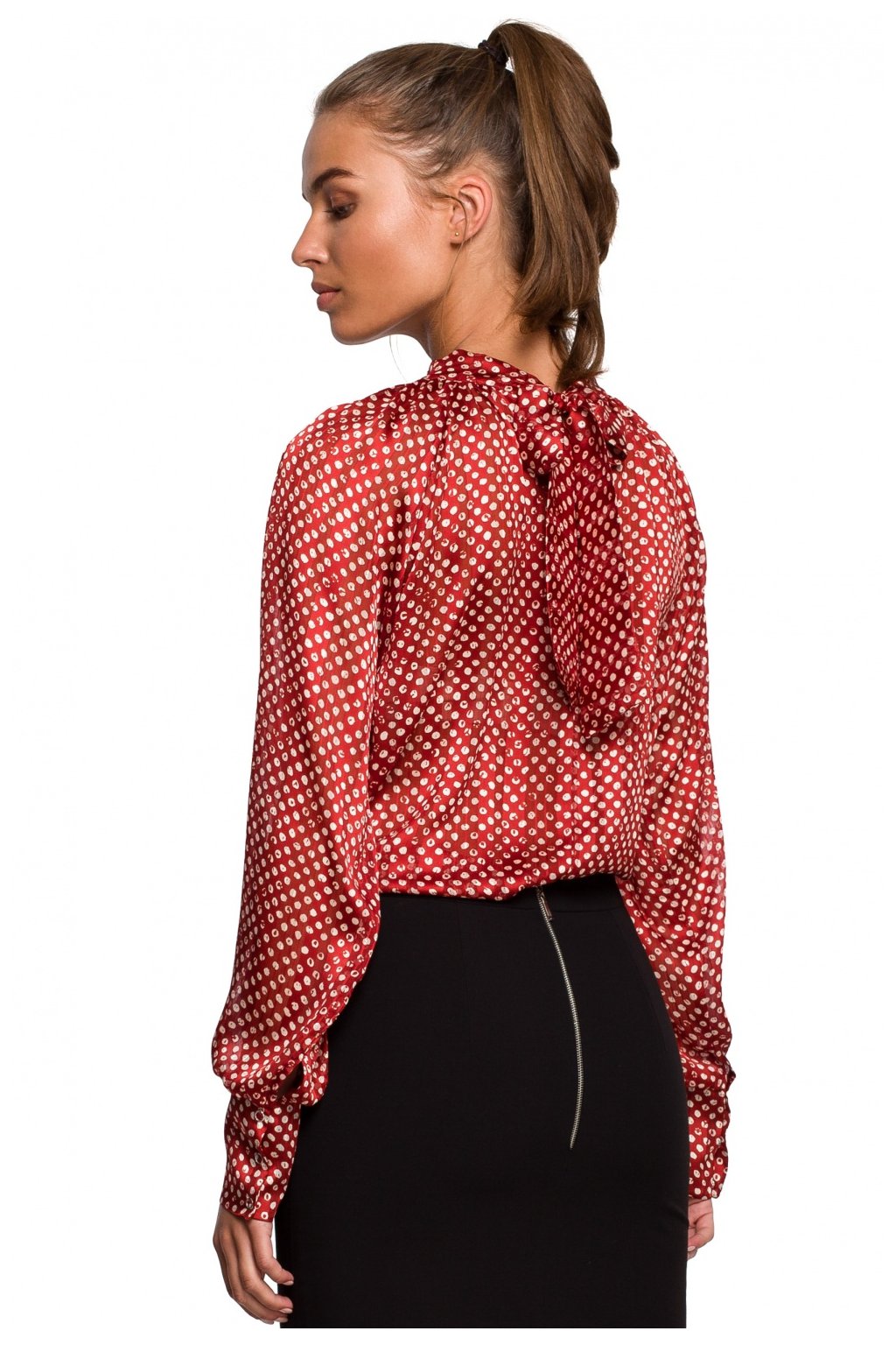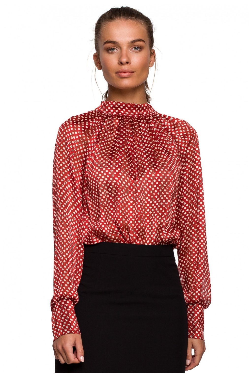 Elegantní halenka ze šifonu s viditelným nepravidelným pruhem a puntíkovým potiskem. Má stojatý límec a vzadu se zavazuje na kravatu, kterou lze nechat volnou nebo z ní udělat jemnou mašli. Noste je s klasickými kalhotami nebo sukní a získejte úžasný vzhled!