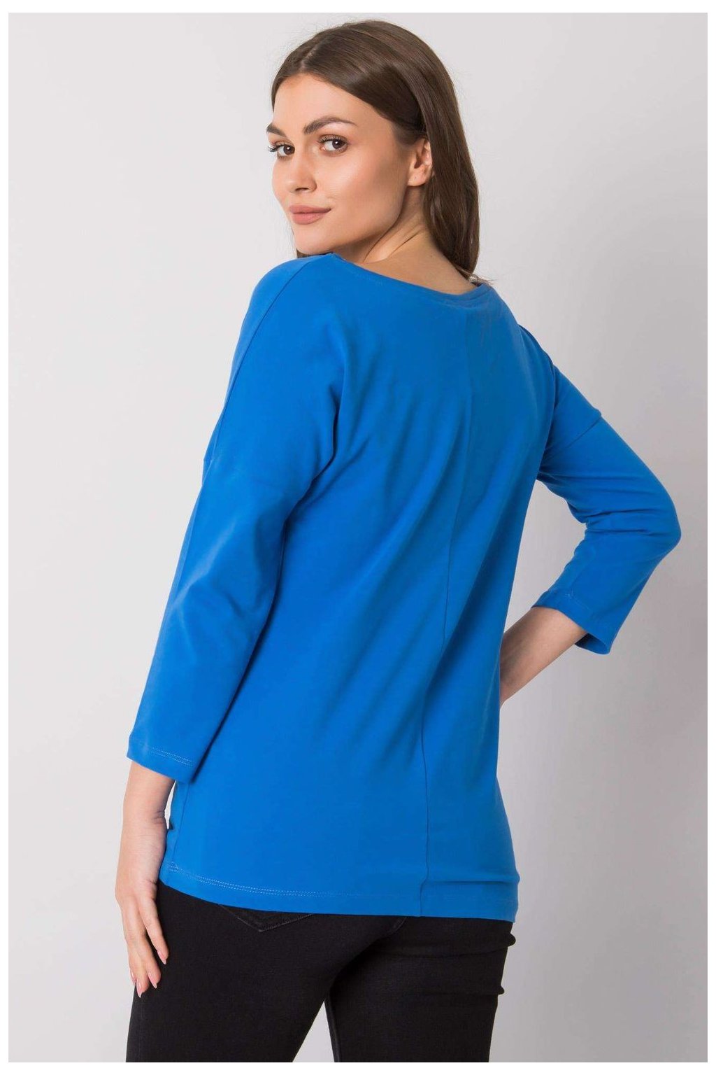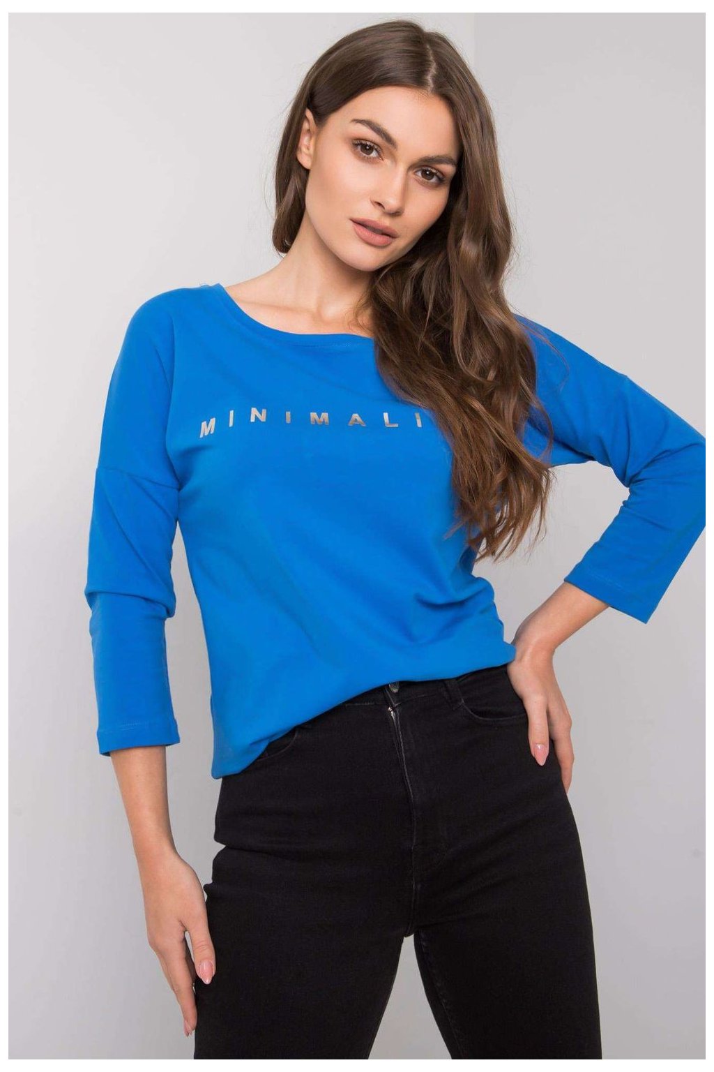Tmavě modrá dámská halenka s nápisy, 3/4 rukávy.