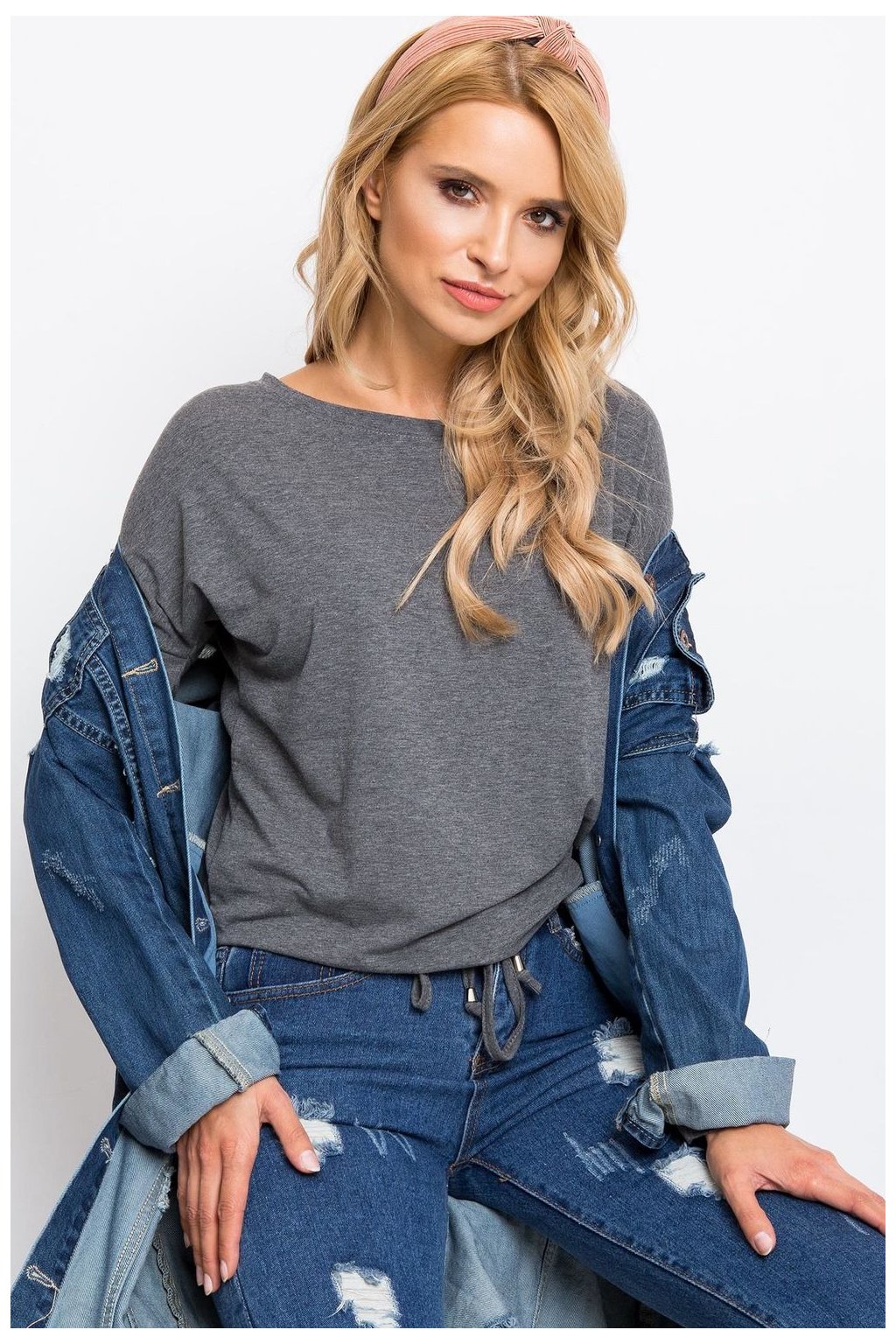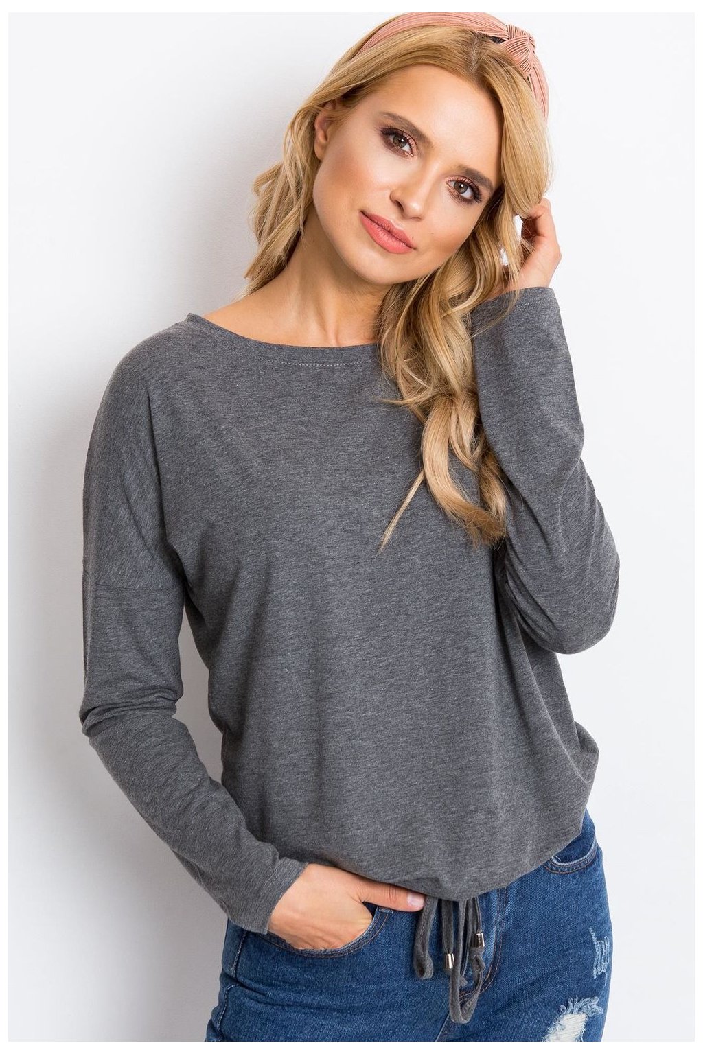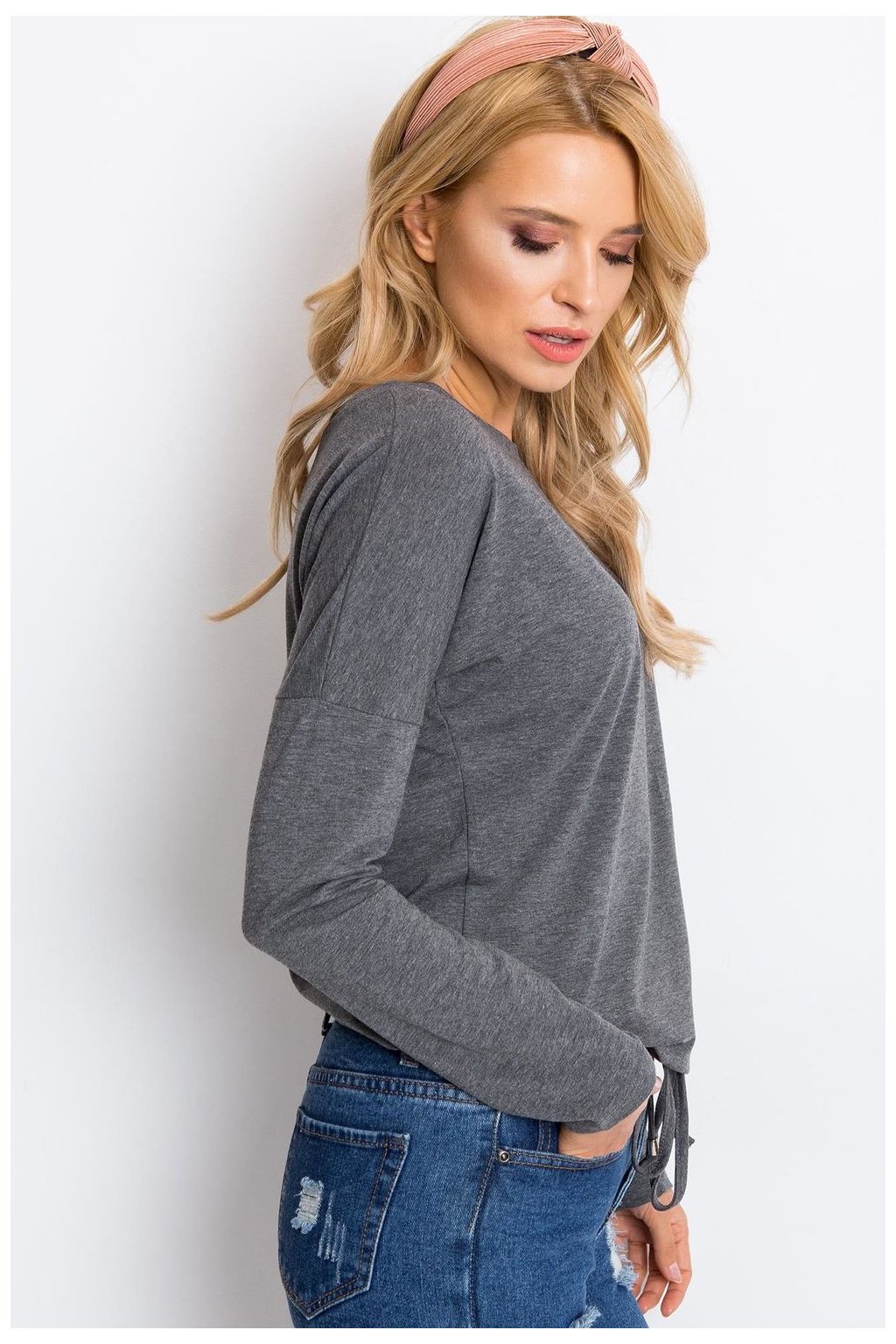 Halenka rovného střihu s dlouhými rukávy. Zavázat dole.