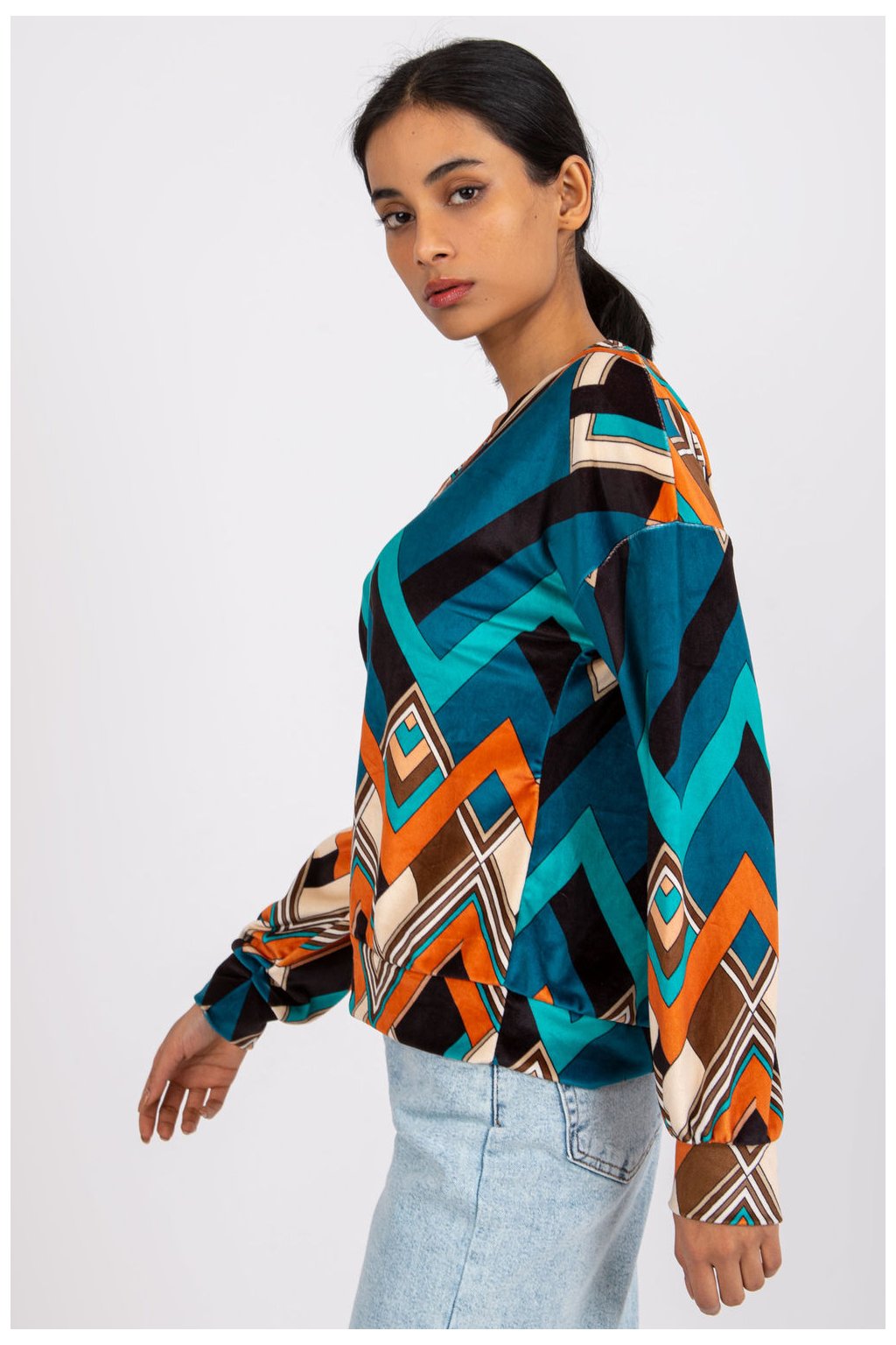 Velurová halenka s dlouhými rukávy a zajímavým vzorem. Skvěle se hodí pro mnoho příležitostí.