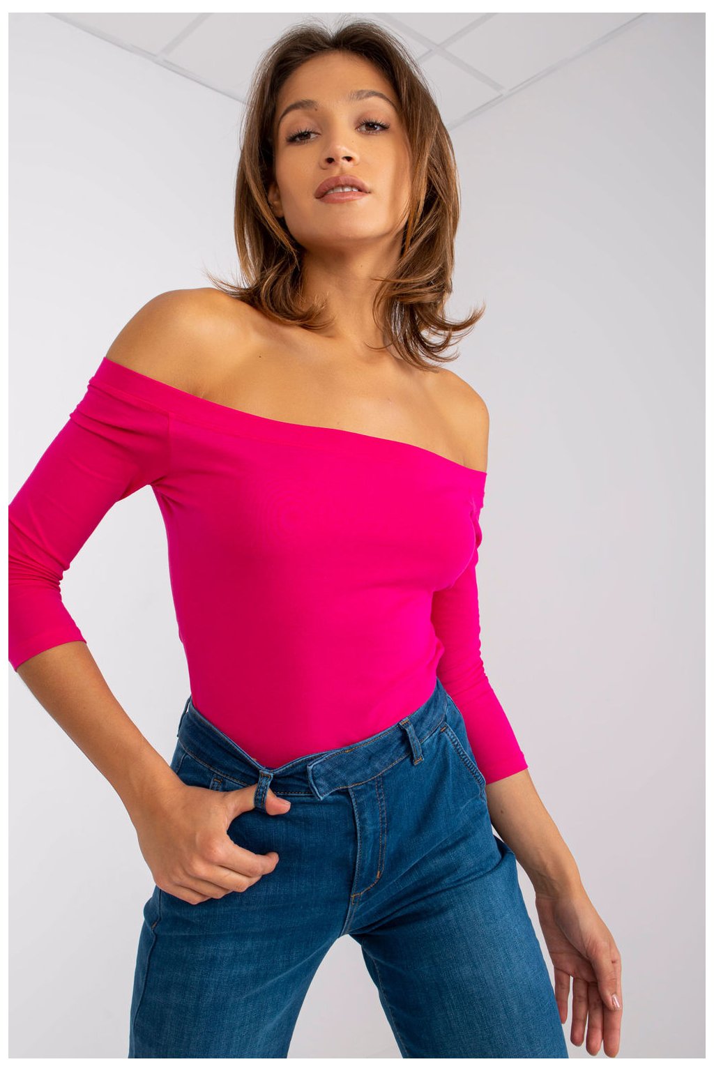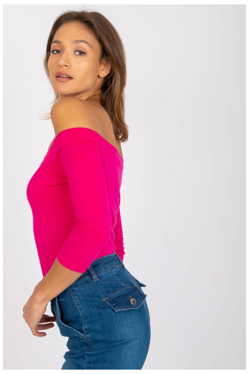 Halenka rovného střihu s 3/4 rukávy. Halenka s odhalenými rameny ve španělském stylu. Skvěle se hodí pro mnoho stylů.