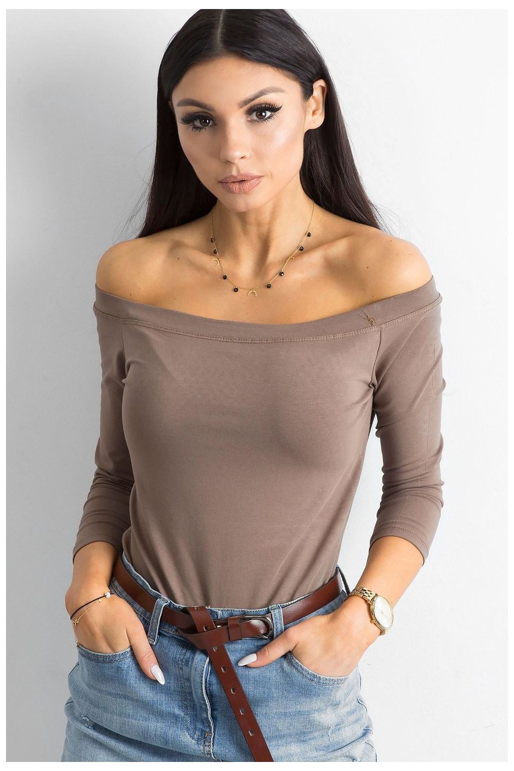 Halenka rovného střihu s 3/4 rukávy. Halenka s odhalenými rameny ve španělském stylu. Skvěle se hodí pro mnoho stylů.