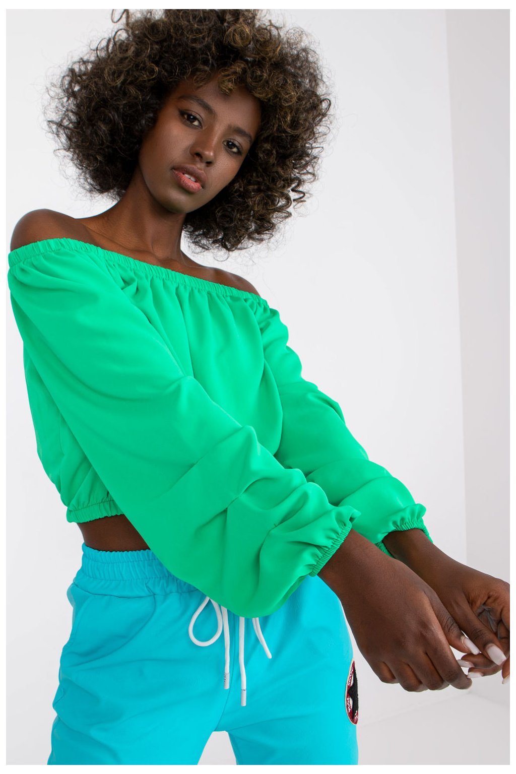 Halenka s dlouhými širokými rukávy a střihem odhalujícím ramena. Ideální na léto.
