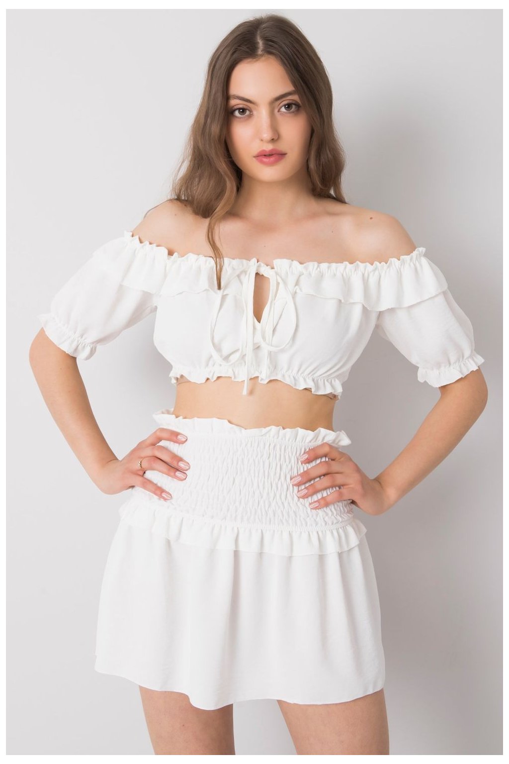 Krátká halenka s výstřihem ve španělském stylu a krátkými rukávy. Zavazování vpředu.