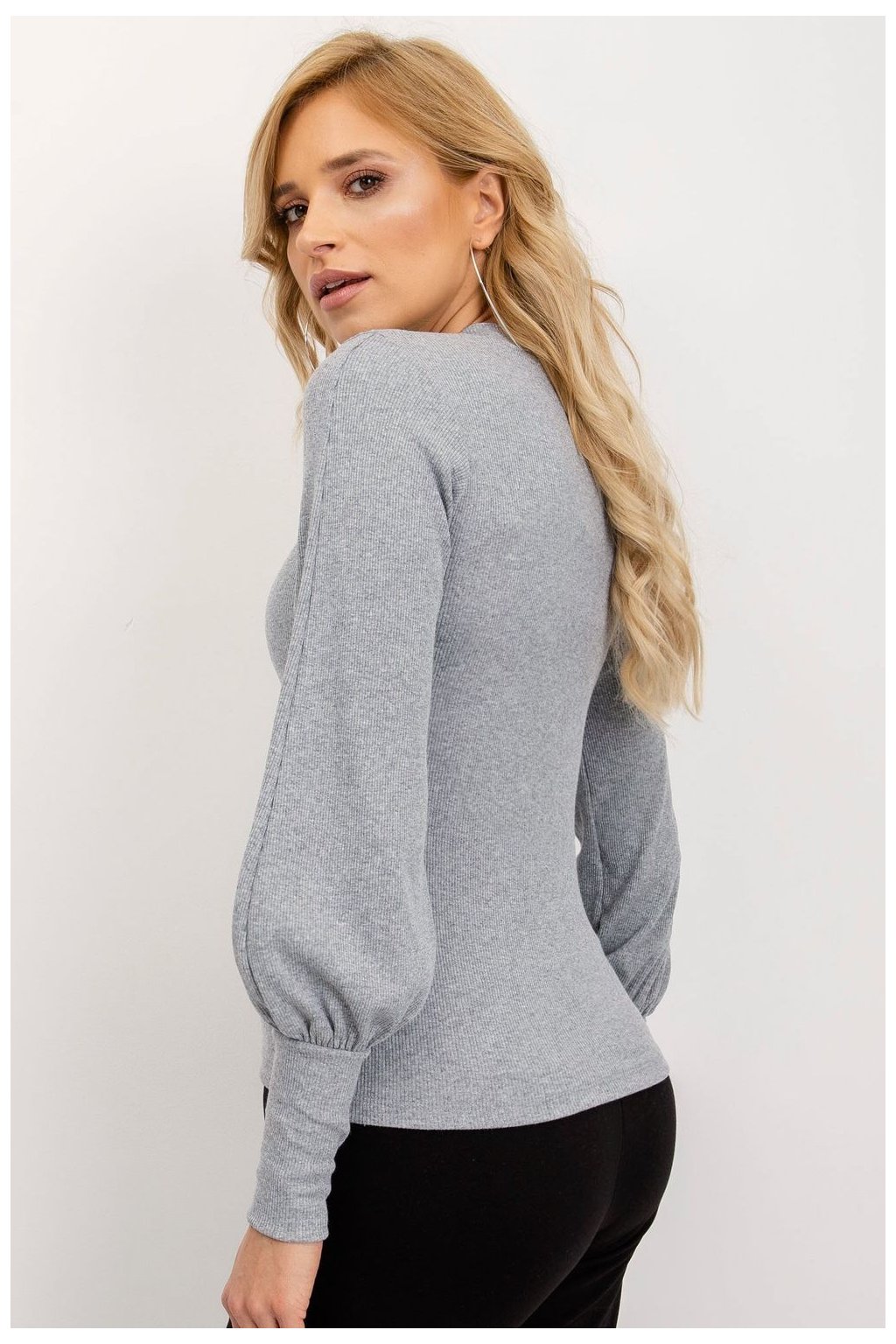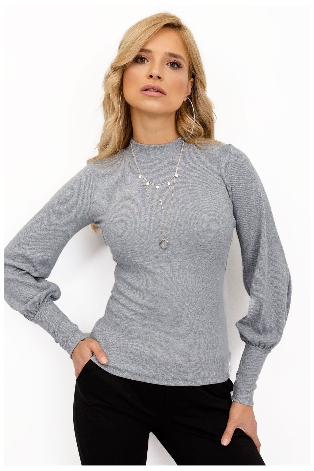 Halenka s dlouhými rukávy z žebrované tkaniny. Rukávy jsou zakončené širokými žebrovanými manžetami.