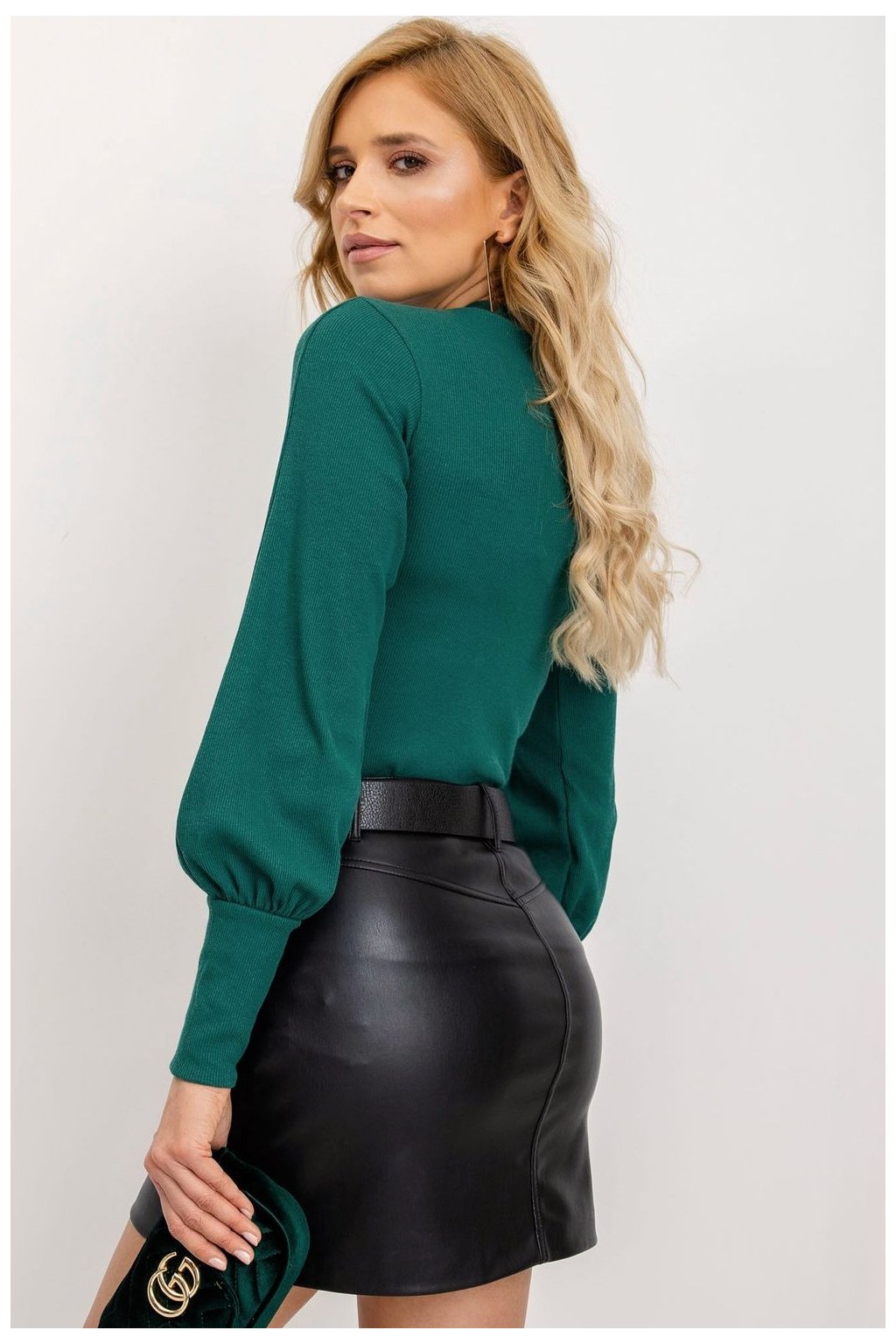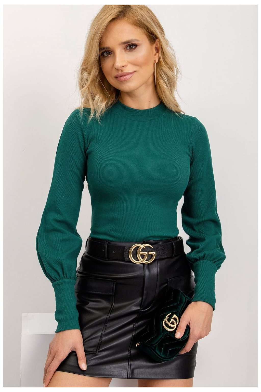 Halenka s dlouhými rukávy z žebrované tkaniny. Rukávy jsou zakončené širokými žebrovanými manžetami.