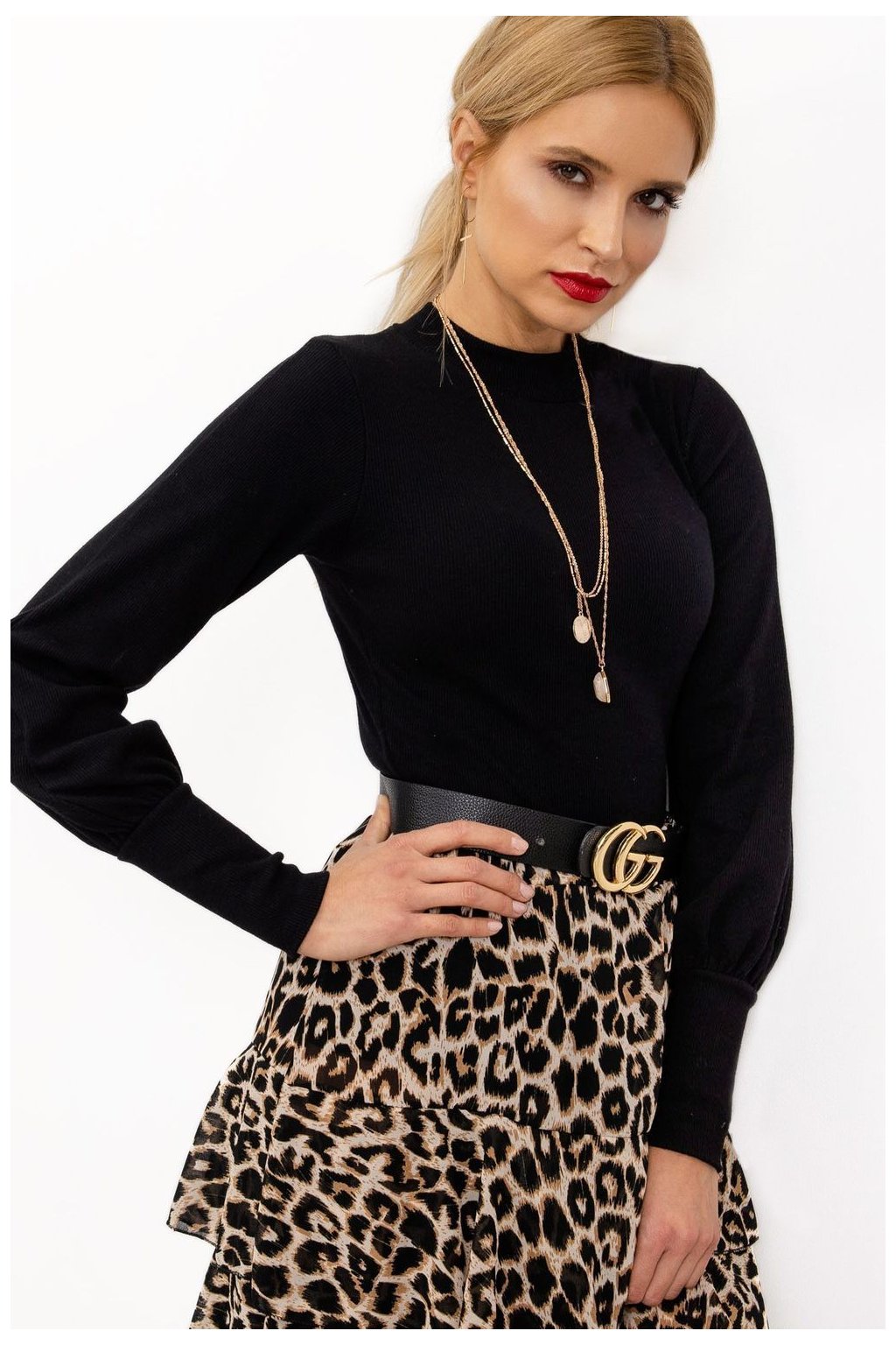 Halenka s dlouhými rukávy z žebrované tkaniny. Rukávy jsou zakončené širokými žebrovanými manžetami.