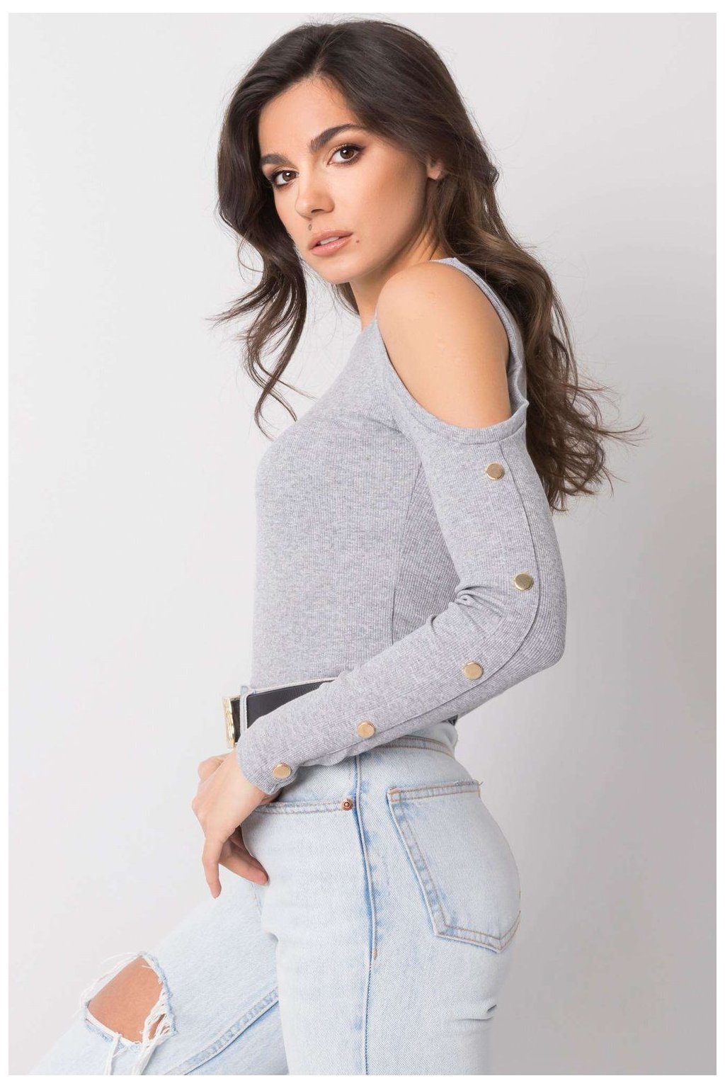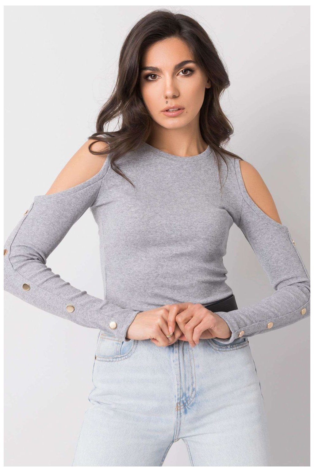 Přiléhavá halenka s dlouhými rukávy z žebrovaného materiálu.
