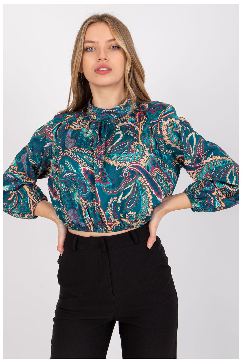 Krátká halenka s dlouhými rukávy a stojáčkem. Nabídka pro každý den i mimo něj.