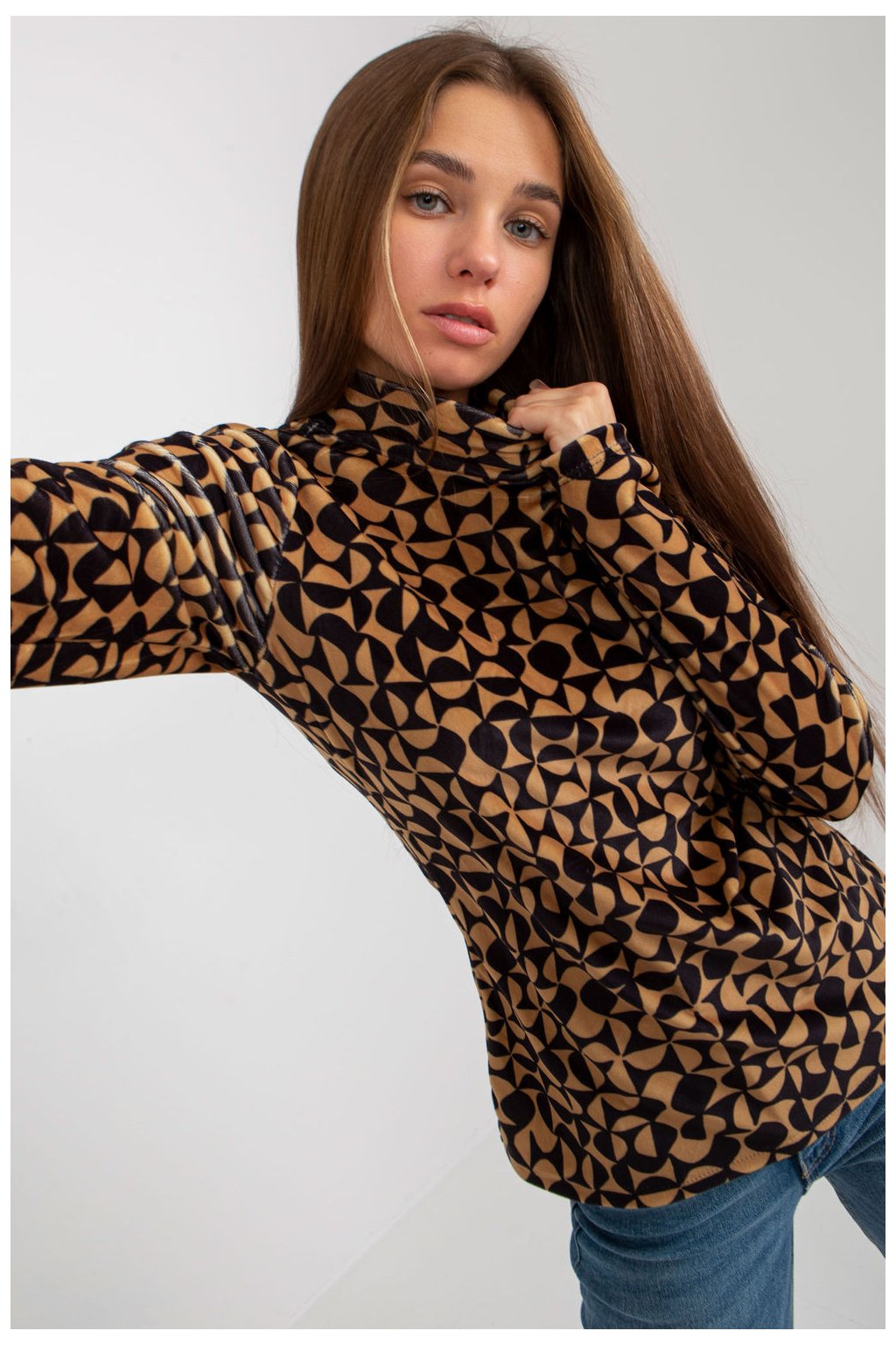 Velurová halenka s dlouhými rukávy a stojáčkem. Halenka z látky se zajímavým vzorem.